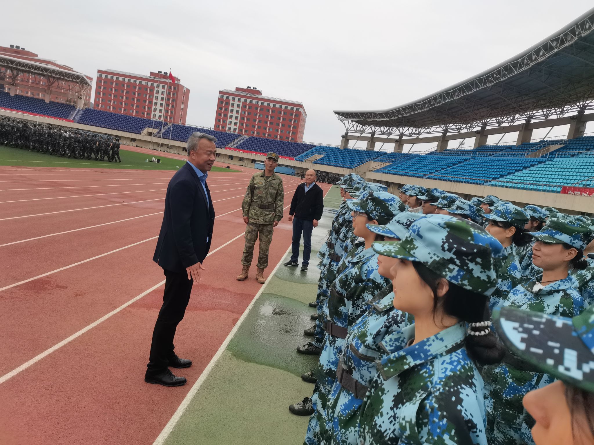 為保障軍訓工作安全有序進行,更好了解新生軍訓成效,鼓舞軍訓士氣,9月4日以來,管理學院負責人向黨、馬明輝、米爾古麗、謝宗棠和班導師、輔導員先后走入民康田徑運動場,走訪看望承訓部隊教官和參訓的2024級全體新生。