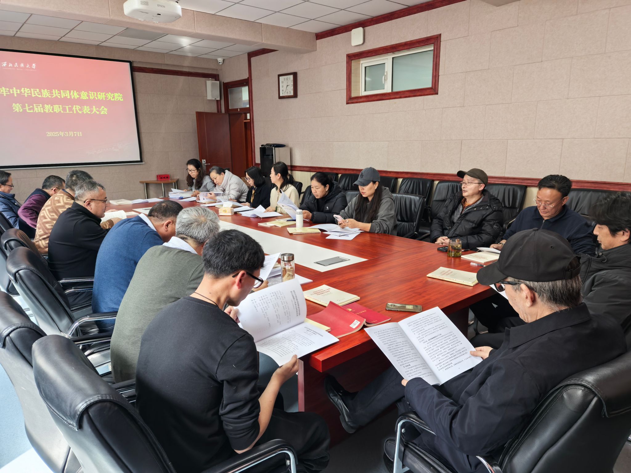 2025 年 3 月 7 日下午 ,鑄牢中華民族共同體意識研究院第七屆教職工代表大會在文淵樓 518 會議室隆重舉行。全體教職工齊聚一堂,共商研究院發展大計。