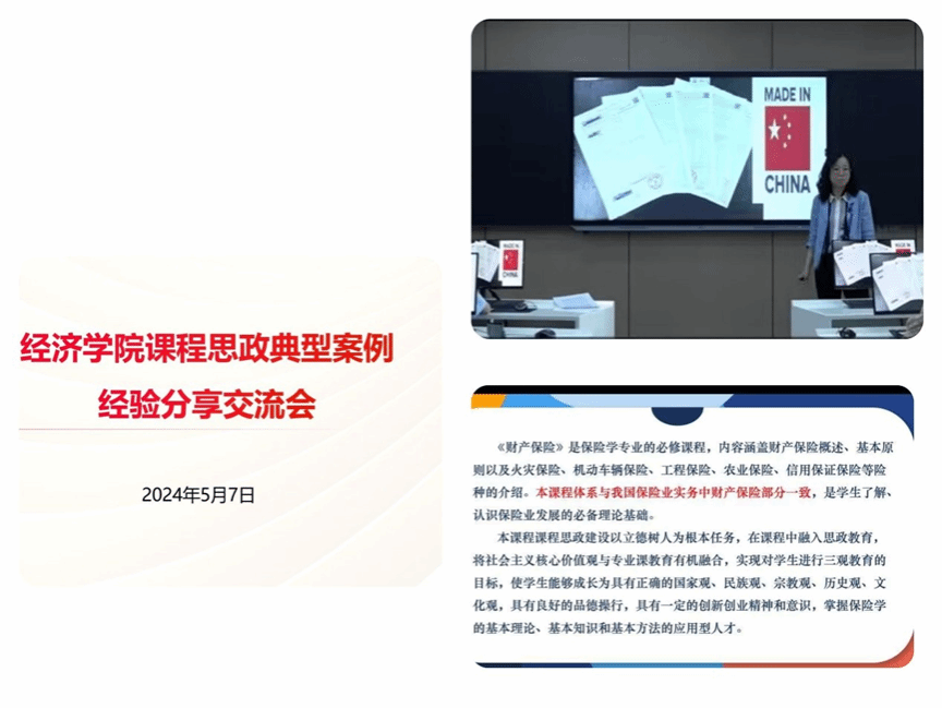 保險(xiǎn)學(xué)專業(yè)郭蕙蘭老師分享了《財(cái)產(chǎn)保險(xiǎn)》的課程思政設(shè)計(jì)。以機(jī)動(dòng)車輛第三責(zé)任強(qiáng)制保險(xiǎn)為例,介紹了如何將保險(xiǎn)學(xué)專業(yè)理論知識(shí)和社會(huì)主義核心價(jià)值觀聯(lián)系起來(lái),將思政素材融入課堂教學(xué)中。