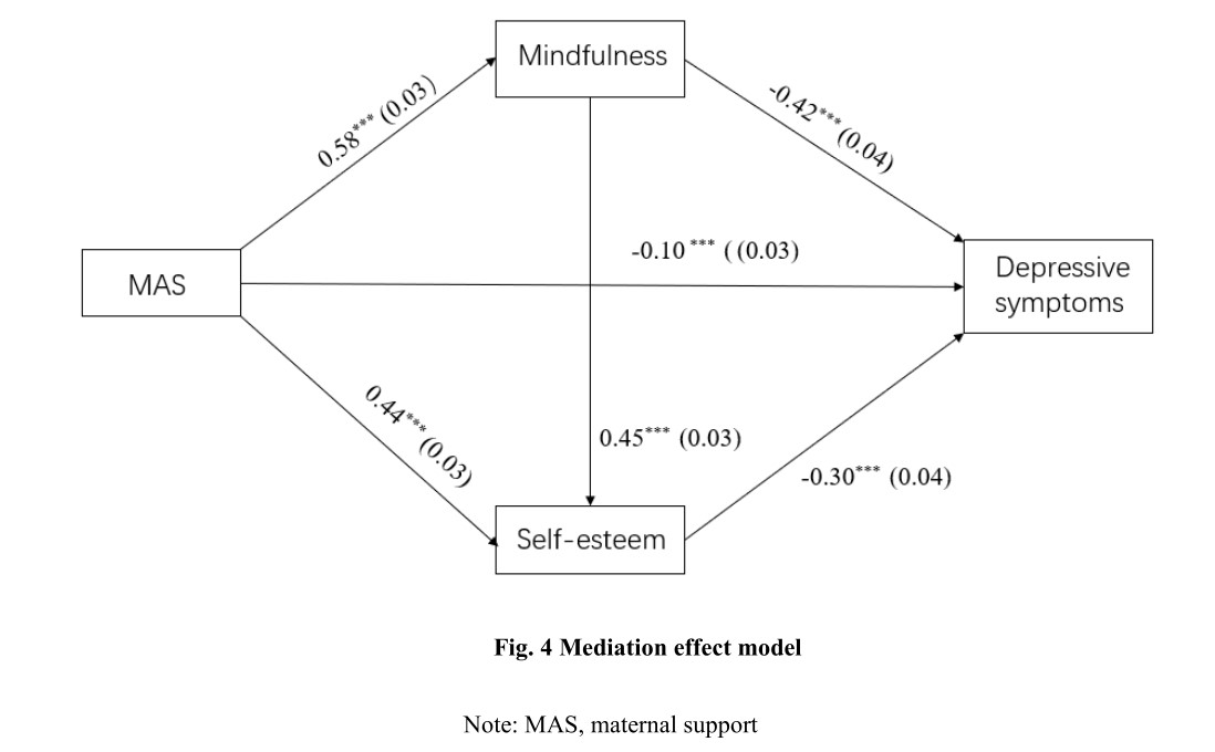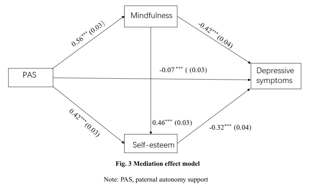 我院師生于2024年5月8日在Frontiers in Psychology期刊發表研究論文“Association Between Parental Autonomy Support and Depressive Symptoms among Chinese College Students: The Chain-mediating Effects of Mindfulness and Self-esteem”。文章主要通過研究父母自主支持與大學生抑郁癥狀之間的關系,以及正念和自尊的作用機制,為預防和干預大學生心理健康問題提供指導意見。研究結果表明父母自主支持和學生抑郁之間存在顯著的負向關聯,而正念和自尊在其中起鏈式中介作用。