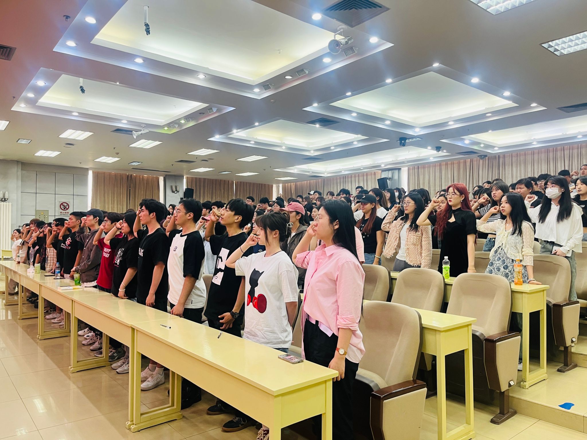大會在莊嚴的國歌聲中拉開帷幕。馮炳超介紹了此次誠信教育的兩項主要內容:一是端正期中考試考風考紀;二是強調作品意識形態問題。他強調誠信教育對于建設優良學風和考風的重要意義,并輔以意識形態審查中常見的典型問題說明藝術創作的紅線不可碰。隨后,蘇知洋就學生的管理工作提出四點要求:一是學生一定要講禮貌,尊敬師長,團結同學,嚴禁作弊和學術不端等行為;二是堅持教育與宗教相分離的原則,嚴禁在校園進行宗教活動;三是嚴格遵守學校規章制度,不得有晚歸、夜不歸宿、飲酒等違反校紀校規的行為;四是嚴防網絡電線詐騙。鐵英秀補充強調了考風考紀以及宿舍管理問題。大會最后,由陳柯帆同學帶領全體學生進行考試誠信承諾宣誓并簽署了《誠信考試承諾書》。