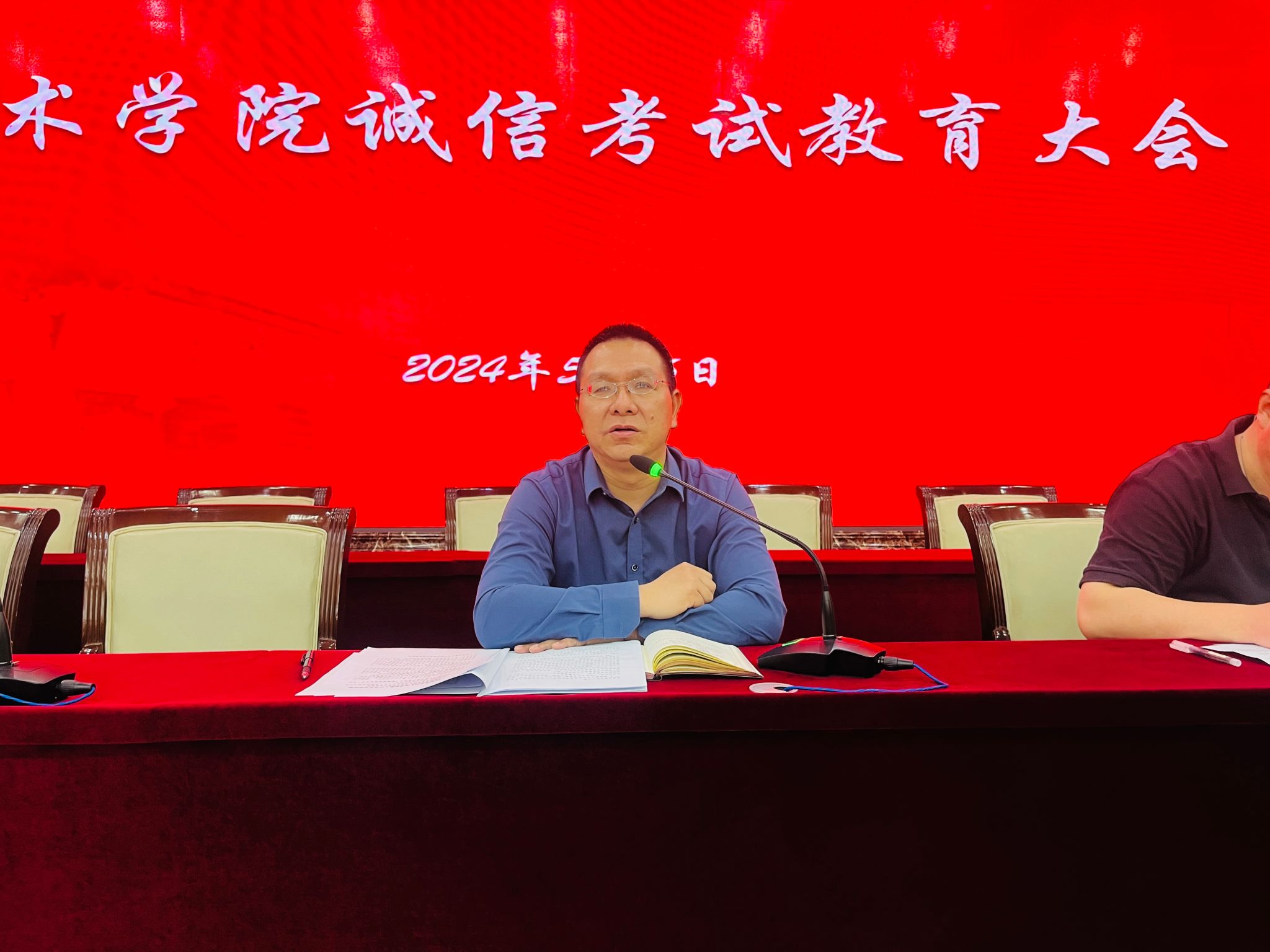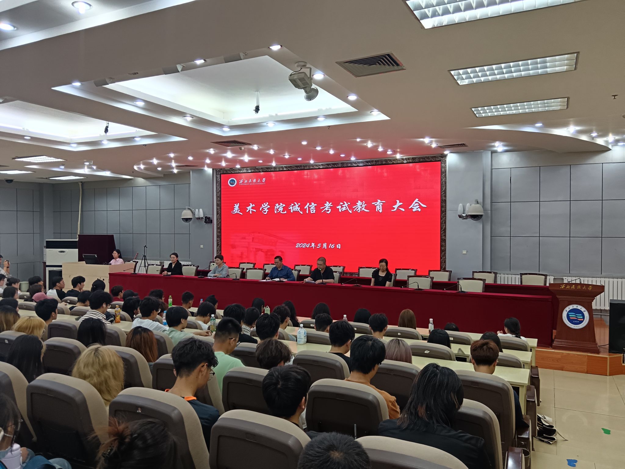 為進一步加強學風建設,嚴肅考風考紀,教育引導學生誠信應考,美術學院于2024年5月16日在文津樓二樓學術報告廳召開誠信考試教育大會。美術學院黨委書記蘇知洋、黨委副書記、副院長鐵英秀、副院長馮炳超、團委書記王媛媛、班主任代表韓曉娟及全體學生參加會議,會議由鐵英秀主持。