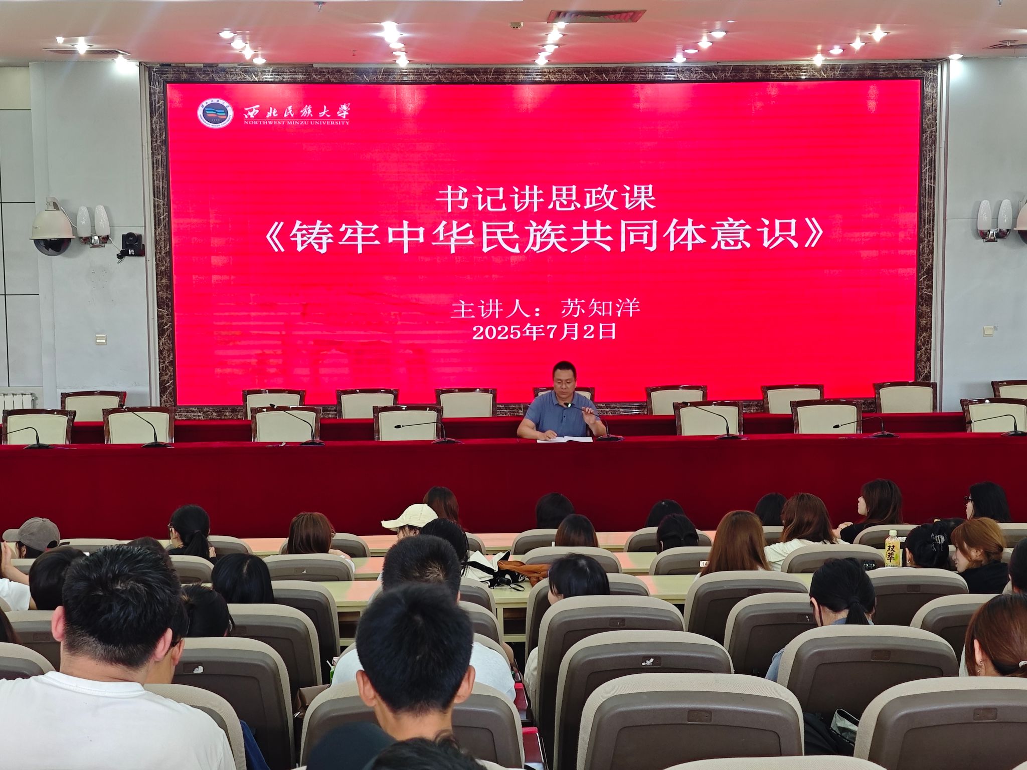 大會在莊嚴(yán)的國歌聲中開始。馮炳超圍繞考風(fēng)考紀(jì)動員和意識形態(tài)教育兩大內(nèi)容對學(xué)生提出四點(diǎn)要求:一是重視考前復(fù)習(xí),二是保持良好心態(tài),三是嚴(yán)守考場紀(jì)律,四是切勿觸碰藝術(shù)創(chuàng)作紅線,分別對各專業(yè)學(xué)生提出具體的意識形態(tài)創(chuàng)作要求。賈亞雄就暑期安全教育進(jìn)行強(qiáng)調(diào),重點(diǎn)圍繞交通、人身、財產(chǎn)、消防及兼職等安全問題,向同學(xué)們敲響安全意識的警鐘。徐海翔重申誠信考試的具體要求,并輔以典型案例,呼吁廣大同學(xué)暑期合理安排時間,抓住機(jī)會提升綜合能力。王媛媛鼓勵同學(xué)們積極參加暑假社會實(shí)踐和“揚(yáng)帆計劃”,但需謹(jǐn)慎參與社會公益組織的實(shí)踐活動。隨后,李雨昕同學(xué)帶領(lǐng)全體學(xué)生進(jìn)行考試誠信承諾宣誓并簽署《誠信考試承諾書》。大會的最后,蘇知洋為同學(xué)們講授了《鑄牢中華民族共同體意識》專題思政課。他從六個方面展開:一是闡釋中華民族共同體的基本概念;二是闡述“鑄牢”的重大意義;三是解讀其理論淵源;四是剖析其深刻內(nèi)涵;五是明確基本任務(wù);六是強(qiáng)調(diào)黨的全面領(lǐng)導(dǎo)是“鑄牢”的根本保證。他要求同學(xué)們樹立正確的“五觀”,把握“五個突出特性”,增進(jìn)“四個與共”,增強(qiáng)國家意識、公民意識、法治意識,堅(jiān)定“五個認(rèn)同”,并深刻領(lǐng)悟“兩個確立”的決定性意義,增強(qiáng)“四個意識”、堅(jiān)定“四個自信”、做到“兩個維護(hù)”。