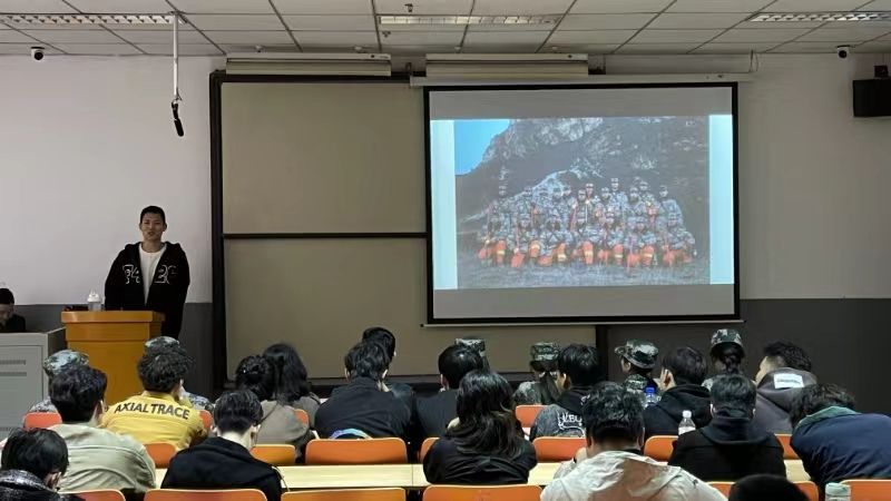 首先,由國防教育先鋒隊成員醫學部退伍學生崔健熙從當兵的成長與收獲、參軍入伍的優惠保障、部隊發展、退役安置和政治榮譽等五個方面詳細介紹了大學生參軍入伍的必要性,鼓勵更多的青年大學生能夠參軍入伍,體驗不一樣的青春。隨后,由管天鄰向同學們詳細講述了自己入伍前后的身體和精神狀態對比,并通過ppt展示分享了自己的軍旅生活和執勤照片,強調作為軍人,在國家和人民利益受到威脅的時刻,一定要有挺身而出的奉獻犧牲精神,同時在軍營中接受的嚴格訓練,培養了自己堅韌不拔的意志和勇往直前的精神,這些都是未來人生道路上不可或缺的財富。