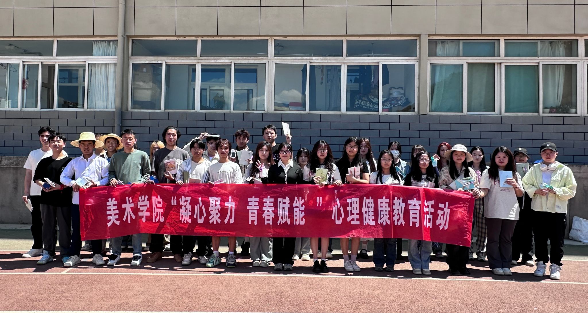 為進一步提高大學生心理健康水平,培養(yǎng)熱愛生活、自尊自信、理性平和、樂觀向上的心理品質(zhì),美術(shù)學院于5月8日中午在民和體育場舉辦“凝心聚力,青春賦能”心理健康活動,學院各年級的學生代表參加了此次活動。