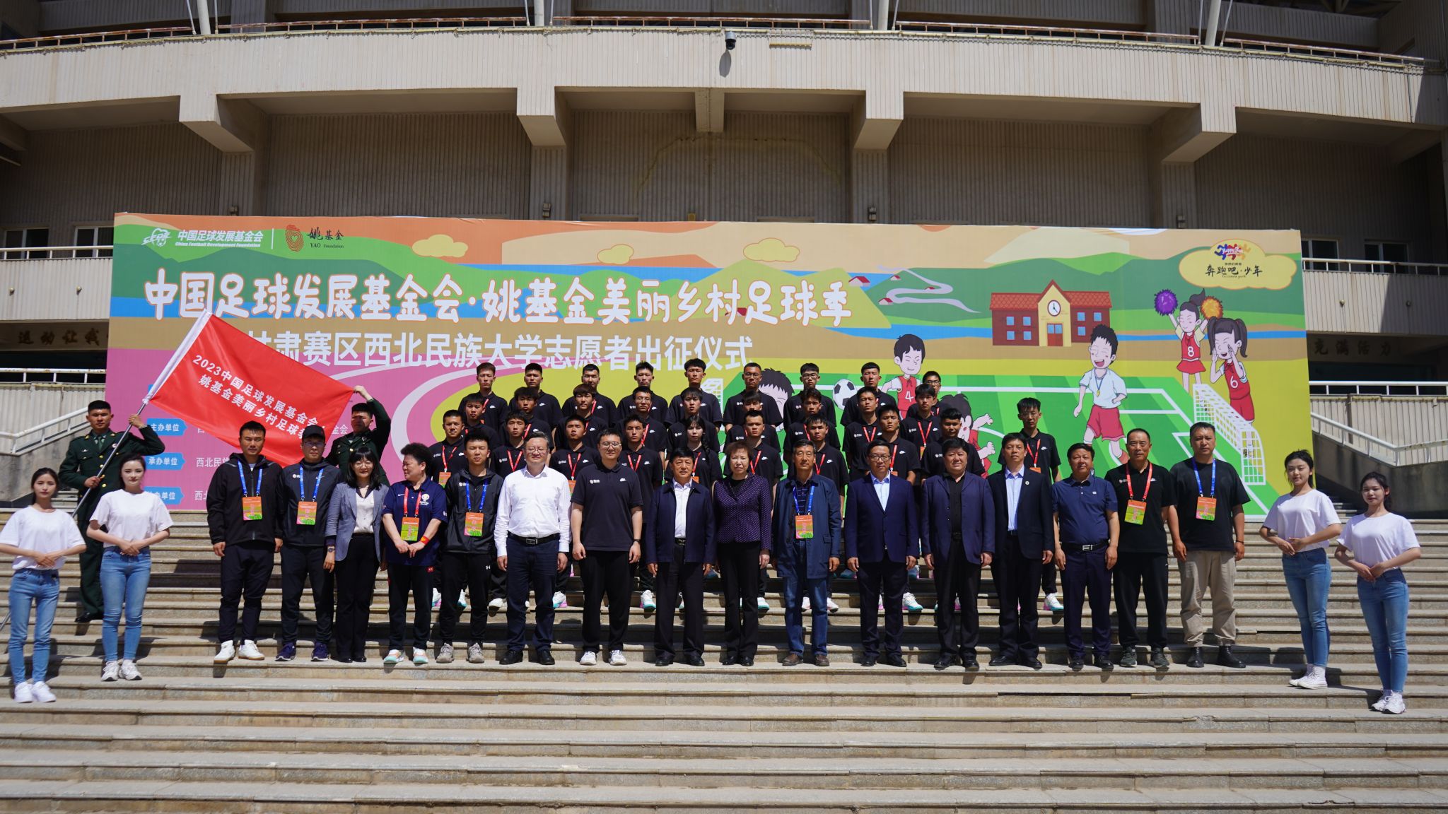 5月15日,2023年中國足球發(fā)展基金會·姚基金美麗鄉(xiāng)村足球季甘肅賽區(qū)西北民族大學(xué)志愿者出征儀式在我校榆中校區(qū)舉行。西北民族大學(xué)黨委副書記、副校長李輝、副校長白日霞、姚基金公益基金會高級項(xiàng)目主管王雙斌、美麗鄉(xiāng)村足球季項(xiàng)目執(zhí)行合作伙伴負(fù)責(zé)人耿傳江、孫澳、校相關(guān)職能部門負(fù)責(zé)同志出席活動。體育學(xué)院院長謝智學(xué)主持儀式。