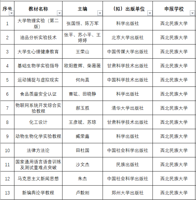 甘肅省“十四五”普通高等教育省級規劃教材認定名單