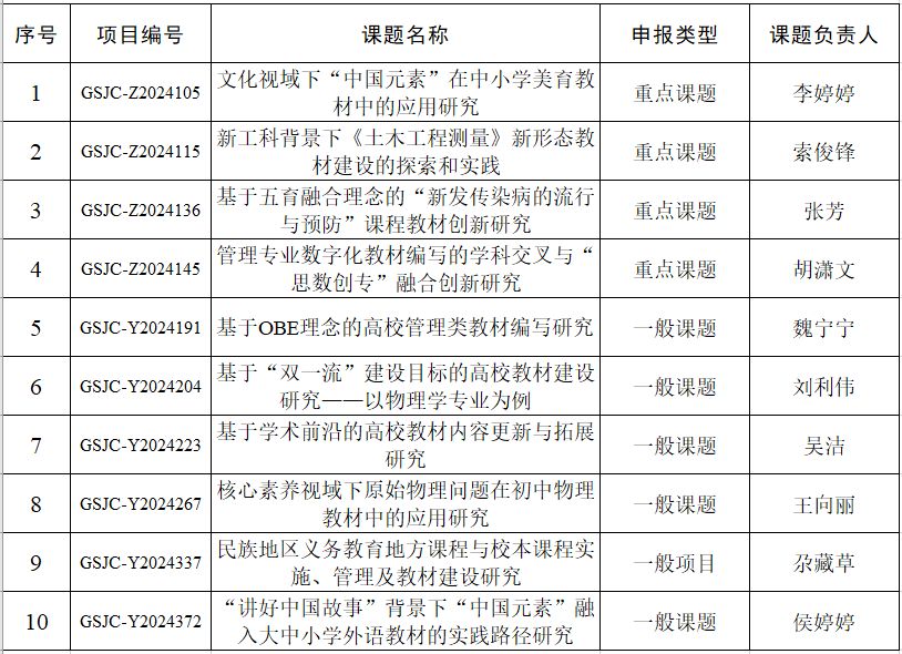 甘肅省教育廳2024年大中小學課程教材專項研究課題立項名單