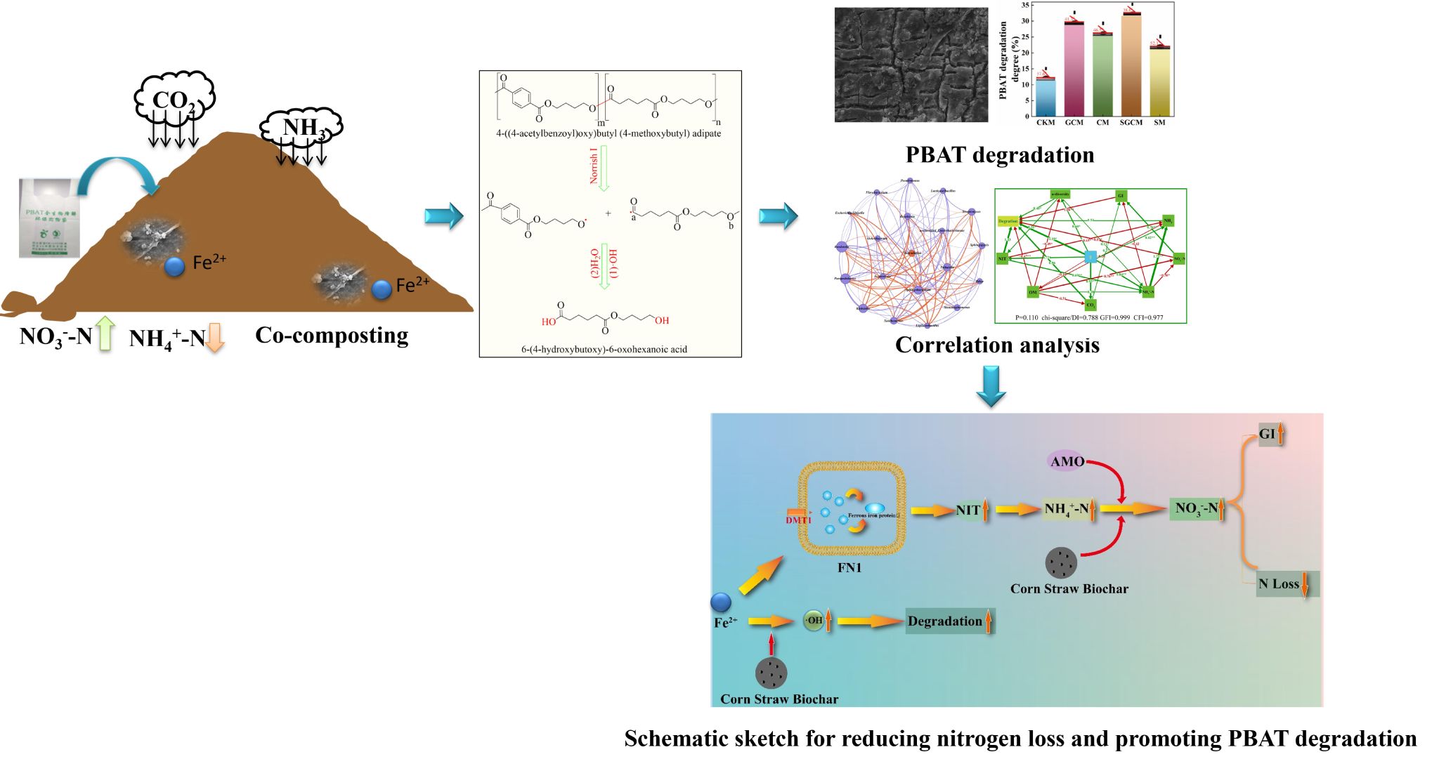 西北民族大學(xué)生物醫(yī)學(xué)研究中心生物制藥與材料工程創(chuàng)新團(tuán)隊近期分別在國際著名期刊《Journal of Environmental Management》(2區(qū)TOP期刊)、《Environmental Pollution》(2區(qū)TOP期刊)在線發(fā)表了題為“Enhanced effect of ferrous sulfate on nitrogen retention and PBAT degradation during co-composting by combing with biochar-loaded FN1 bacterial composites”和 “Promoting role of nitrogen-fixing bacteria and biochar on nitrogen retention and degradation of PBAT plastics during composting”系列學(xué)術(shù)論文。