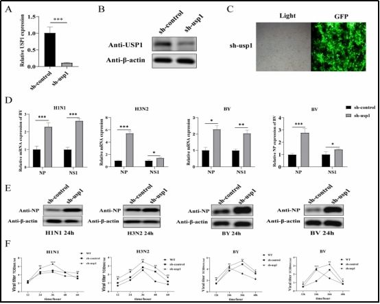 研究發(fā)現(xiàn),USP1通過介導RIG-I的去泛素化,增強其蛋白穩(wěn)定性,從而激活下游的NF-κB信號通路,促進I型干擾素(IFN-I)和促炎細胞因子的產(chǎn)生,最終抑制流感病毒的復制。這些結(jié)果不僅揭示了USP1通過RIG-I介導的抗病毒免疫新機制,還為利用基因編輯技術(shù)構(gòu)建高產(chǎn)流感疫苗的MDCK細胞株提供了潛在靶點。研究證明了USP1在宿主抗病毒免疫中的關(guān)鍵作用,為新型流感疫苗開發(fā)策略奠定了理論基礎。