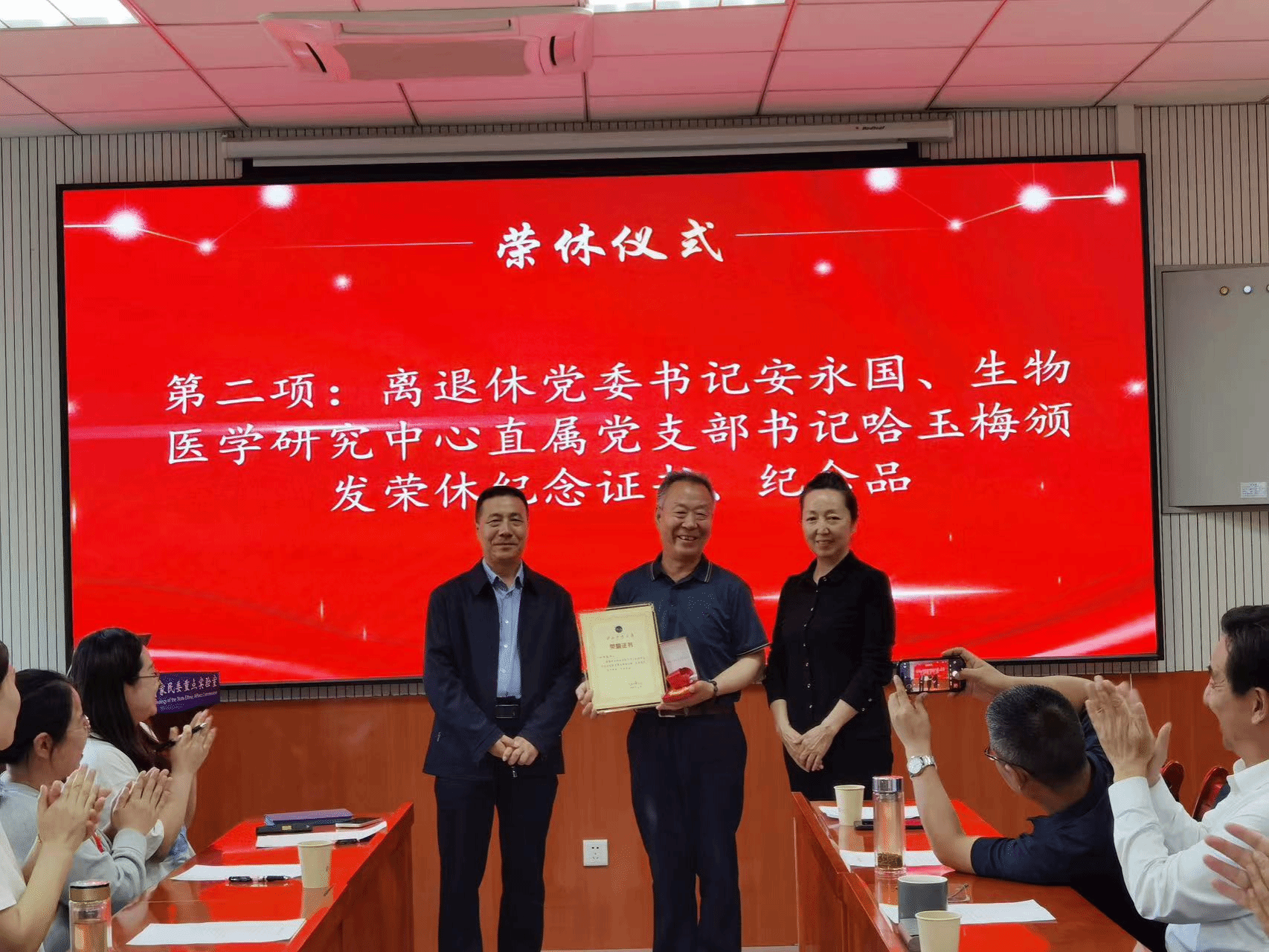 歲月映初心,薪火永相傳。5月14日下午,生物醫學研究中心舉行令世鑫老師榮休儀式。學校離退休工作處,黨委教師工作部、人事處領導,生物醫學研究中心全體教職工,學生代表參加儀式。儀式由中心直屬黨支部書記哈玉梅主持。