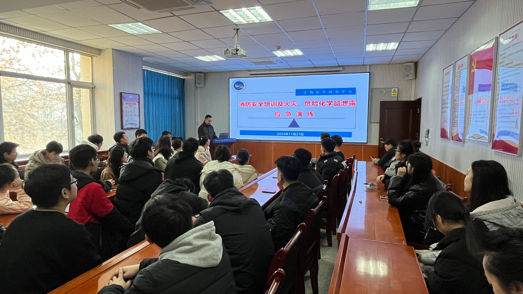 為進(jìn)一步增強(qiáng)師生安全意識與險情應(yīng)急處置能力,2024年11月27日生物醫(yī)學(xué)研究中心在分別兩校區(qū)開展消防知識培訓(xùn)及火災(zāi)、危險化學(xué)品泄露應(yīng)急處置演練活動。活動由甘肅卓越特種行業(yè)技術(shù)服務(wù)有限公司提供技術(shù)指導(dǎo),學(xué)校保衛(wèi)處和實驗教學(xué)部提供演練物資保障。