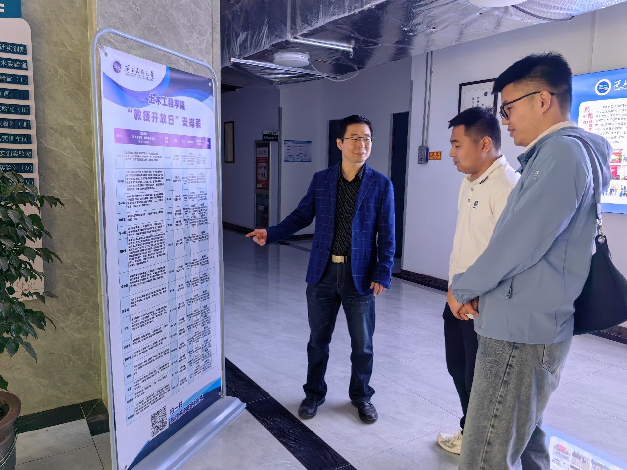 行程的第二站聚焦學院“第二課堂”育人實踐。校友現(xiàn)場觀摩了結構設計創(chuàng)新大賽作品、BIM技術應用學生團隊成果展示,以及“砼心筑夢”志愿服務項目的活動剪影。看到學弟學妹們將課堂所學轉化為實踐能力,展現(xiàn)出卓越的動手能力、創(chuàng)新思維和社會責任感,同雨軒校友感慨道:“如今的第二課堂體系如此完善,平臺如此廣闊,真正做到了寓教于行、知行合一,為培養(yǎng)新時代高素質土木人才奠定了堅實基礎,令人振奮。”