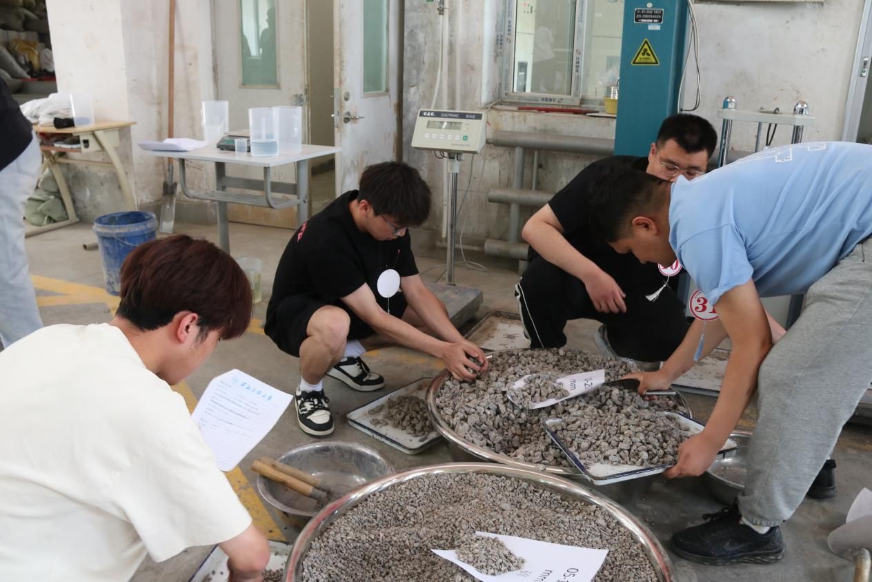 決賽評審團由土木工程學院院長曹萬智教授,建筑材料實驗室主任楊永恒正高級工程師,學院副院長郭啟龍教授,建材系青年骨干教師劉東升、陳成芹以及學院團委書記郎文星組成。決賽現場,選手們根據精心設計的計算書,有條不紊地進行稱料、拌合、測量坍落度等操作,展現出扎實的專業基礎和實踐能力。各位專家、教授對參賽團隊及選手進行了嚴格評審,并為選手們提出了寶貴的建議和指導。