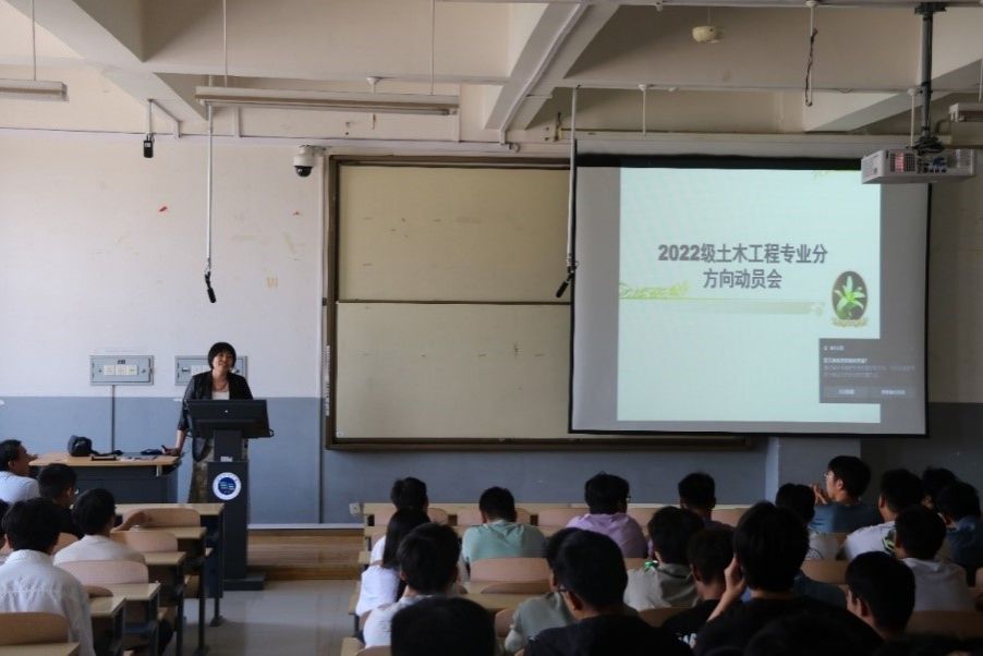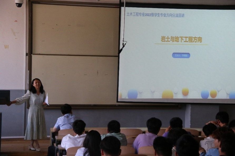 會上,吳忠鐵、黃洪猛、李曉娟三位教師分別介紹了建筑工程、道路工程、橋梁工程、巖土與地下工程四個專業(yè)方向。教師們通過鮮活的實例與真實的數(shù)據(jù),生動描繪了各專業(yè)領(lǐng)域的特色及行業(yè)發(fā)展趨勢,深入講解了各專業(yè)方向的課程設置、就業(yè)前景、行業(yè)需求,讓同學們對各專業(yè)方向有了清晰而直觀的認識。