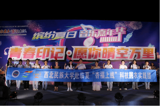 實踐團抵達東鄉(xiāng)縣時正值當?shù)嘏e行東鄉(xiāng)縣唐汪鎮(zhèn)“花兒臨夏在河之洲”第二屆民族文化藝術旅游暨唐汪鎮(zhèn)杏子采摘系列活動。鄉(xiāng)村文化振興既要塑形,也要鑄魂,要想在此過程中獲得實效,歸根結底需要人民群眾在實踐參與中提升獲得感與幸福感,讓群眾享有更加充實、更為豐富、更高質量的精神文化生活中,提振精神面貌,激發(fā)鄉(xiāng)村振興的內生動力。實踐團成員在東鄉(xiāng)縣文旅局的大力支持下,本著“以藝術引領風尚,文化滋養(yǎng)心靈”的宗旨開展了三場公益演出。舞臺上演員們精彩演繹,舞臺下觀眾歡呼喝彩,勾勒出了一幅熱鬧的鄉(xiāng)村美景,點亮了農村美好文化生活,營造了良好的鄉(xiāng)村文化氛圍,為鄉(xiāng)村振興起到了積極的推動作用。