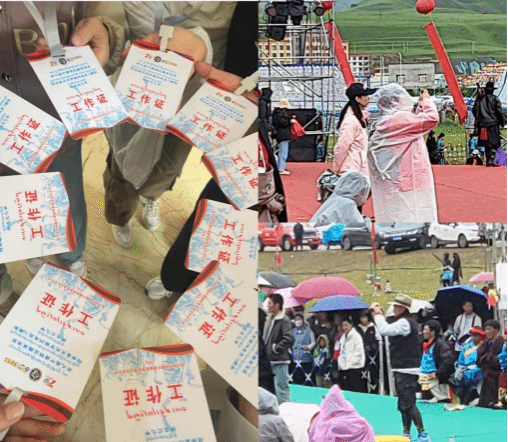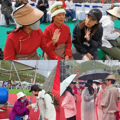實(shí)踐團(tuán)成員在“萬人鍋莊”展演活動(dòng)中統(tǒng)一著裝、佩戴工作證開展青年志愿賽事服務(wù)活動(dòng),在開幕式、彩排、正式展演每個(gè)階段中團(tuán)隊(duì)成員根據(jù)任務(wù)分工,堅(jiān)守于自己的工作崗位,通過實(shí)地體驗(yàn)式的志愿服務(wù),近距離、沉浸式感受碌曲萬人鍋莊舞蹈的風(fēng)采。同時(shí),團(tuán)隊(duì)成員以實(shí)地走訪的形式與各地代表團(tuán)及人民群眾展開交流訪談。采訪中一位當(dāng)?shù)乇硌菡哒f:“我們大家只要聚到一起就會(huì)跳起鍋莊舞,跳鍋莊舞蹈寄托著我們對家鄉(xiāng)的熱愛、對祖國的贊美和祝福。”一位場外觀眾說:“這次活動(dòng)場面很宏大,歡慶的色彩到處可見,很慶幸參與到甘南州成立70周年文化藝術(shù)節(jié),感覺這里的自然環(huán)境以及人文精神面貌都煥然一新,可以深入了解不同地區(qū)的民族風(fēng)俗,感受不同的文化魅力。”