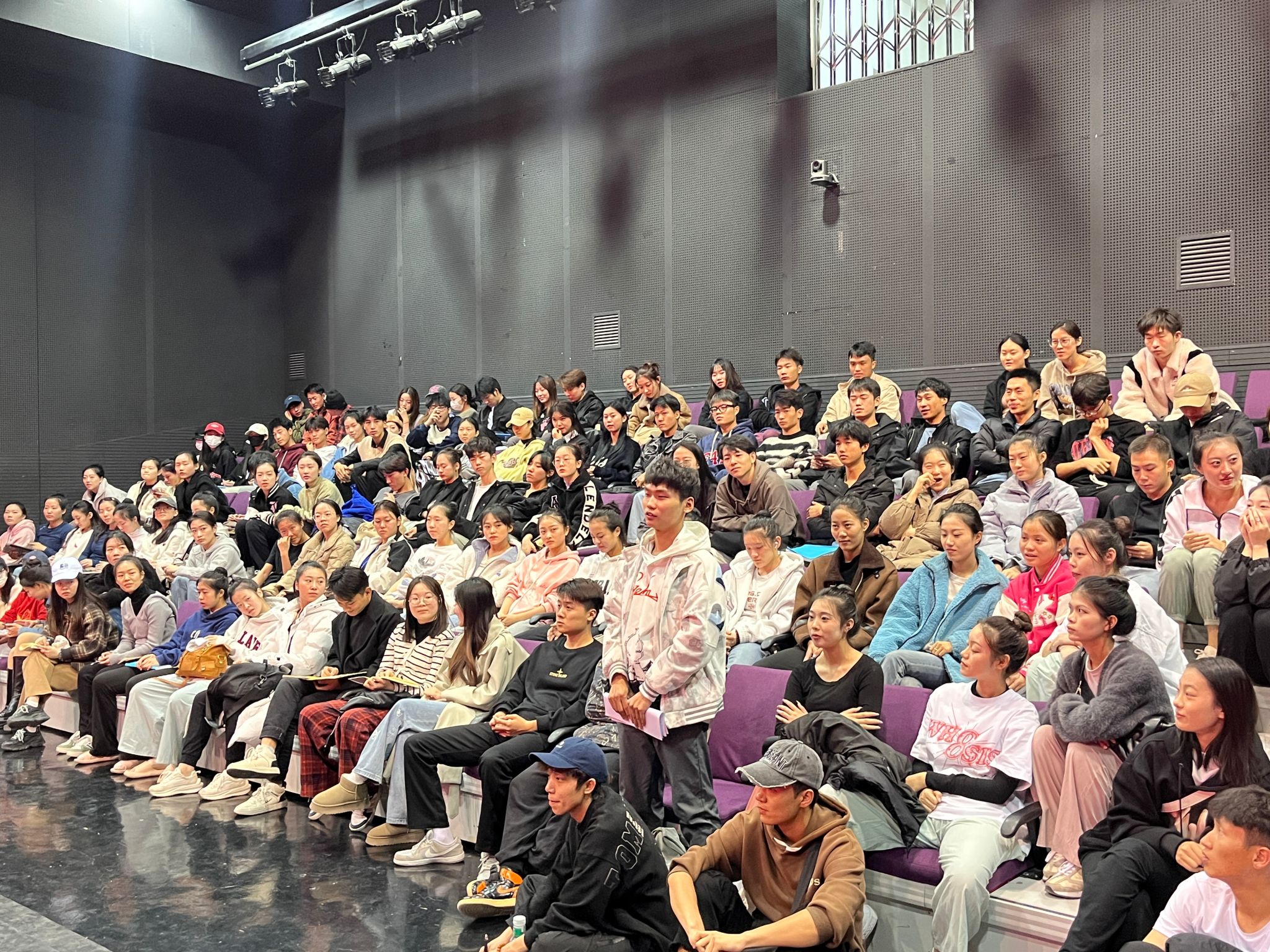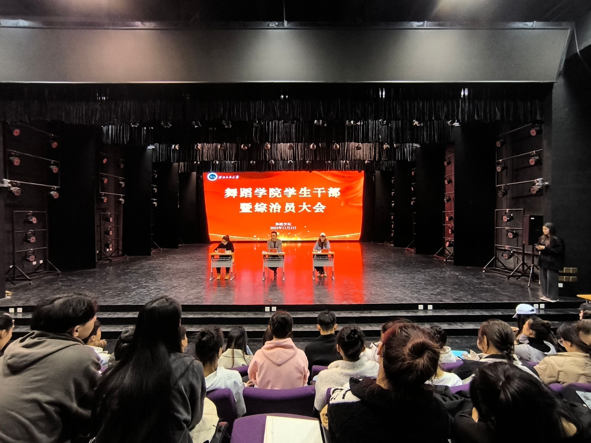 11月3日,舞蹈學院在舞蹈樓小劇場召開學生干部暨學生綜治員工作會議。學院黨委副書記、副院長魏俊閃,學生管理辦公室主任、團委書記刁彥,輔導員馬潤春,全體學生綜治員、學生干部、宿舍長參加了此次會議。會議由魏俊閃主持。