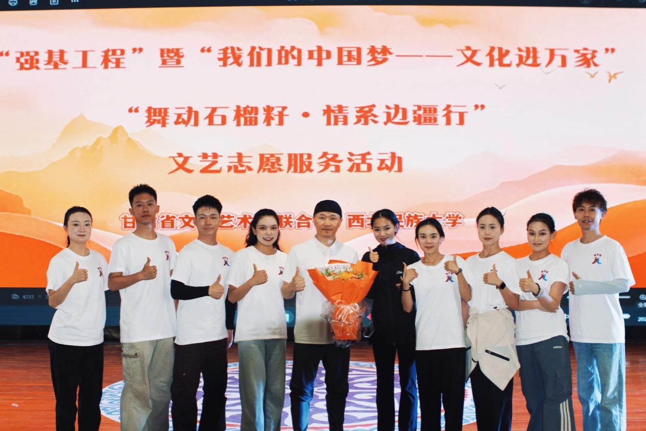 2025年7月18日至23日,由西北民族大學舞蹈學院與甘肅省文學藝術界聯合會聯合組建的大學生暑期“三下鄉”文藝志愿服務團,赴酒泉市開展了“舞動石榴籽·情系邊疆行”文藝志愿服務活動。本次活動由舞蹈學院巴特爾教授帶隊,匯聚了舞蹈表演與舞蹈編導專業的本碩優秀學子,組成了10人的文藝志愿服務團隊,深入酒泉市肅北蒙古族自治縣、阿克塞哈薩克族自治縣,通過專業藝術輔導、文化調研交流、基層慰問演出等多種形式,為民族地區送去高質量的文化藝術服務。
