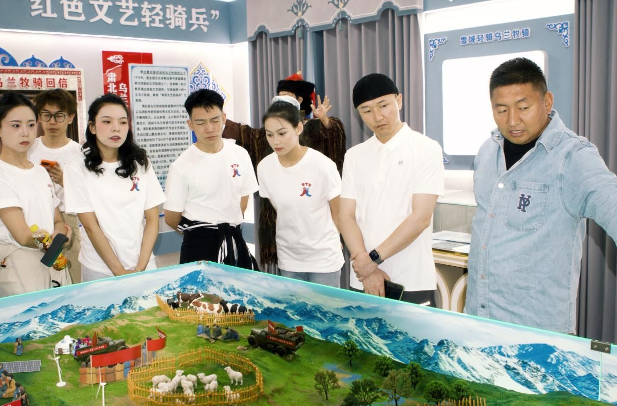 7月19日,“舞動石榴籽·情系邊疆行”藝術實踐團在肅北縣烏蘭牧騎團長烏力吉老師的帶領下,走進肅北縣非遺中心開展了一系列的文化調研活動。百余項國家級、省級、市級非物質文化遺產在這里舒展著各自的脈絡,串起了肅北從游牧文明到多民族交融的千年歲月。下午,由肅北烏蘭牧騎副團長孫達來老師帶領藝術實踐團的師生們走進肅北縣博物館,在縣博物館賽館長的講解下深度了解了肅北縣的發展歷程。特別是看到當代非遺保護與博物館建設的成果,更深刻體會到文化傳承既要守護歷史根脈,也要面向未來發展。這種跨越時空的文化對話,正是鑄牢中華民族共同體意識最生動的實踐。