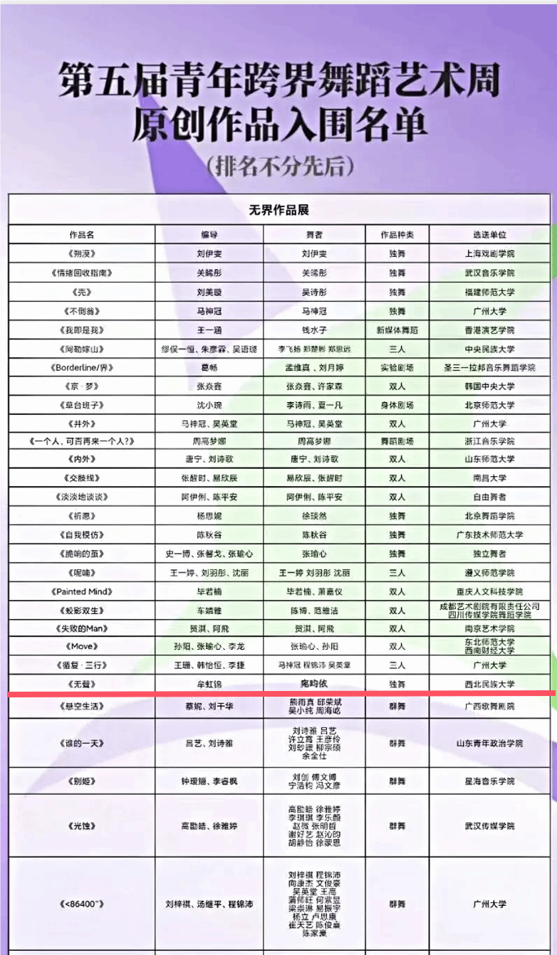 在藝術(shù)實踐領(lǐng)域,獲獎作品《無聲》的成功入選,充分體現(xiàn)了學院“以教促創(chuàng)、以創(chuàng)踐學”的教學理念,以及幫助青年學子在藝術(shù)實踐中實現(xiàn)自我突破與成長的育人成效。青年跨界舞蹈藝術(shù)周是國內(nèi)極具影響力的青年舞蹈交流平臺,聚焦跨界創(chuàng)新與青年舞蹈人才培養(yǎng),旨在為青年舞者提供展示才華、交流學習的優(yōu)質(zhì)舞臺。該作品以細膩的情感表達與獨特的舞蹈語言,探索了“無聲”背后的精神世界與文化內(nèi)涵,既展現(xiàn)了青年創(chuàng)作者對舞蹈藝術(shù)的深度思考,也體現(xiàn)了表演者扎實的舞蹈功底與出色的藝術(shù)表現(xiàn)力。