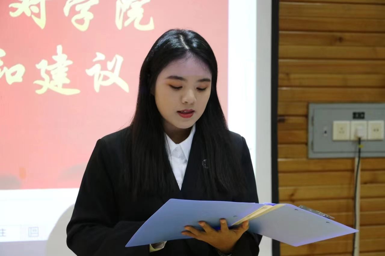 周正清同學(xué)代表學(xué)生會(huì)主席團(tuán)做了工作報(bào)告,報(bào)告全面回顧總結(jié)了2022—2023學(xué)年團(tuán)委、學(xué)生會(huì)的工作和成績(jī)。隨后學(xué)生會(huì)主席團(tuán)成員宣讀了學(xué)院學(xué)生會(huì)章程,聚焦思想,倡導(dǎo)德智體美勞全面發(fā)展。