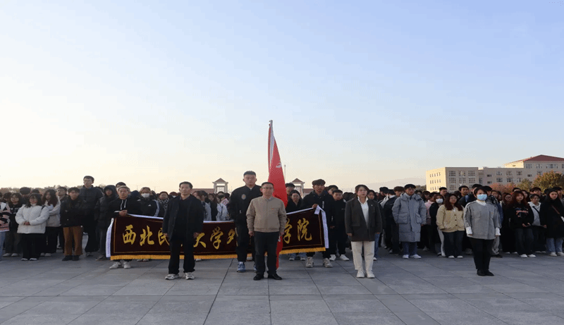 外國語學院于2024年11月4日-8日在榆中校區(qū)圖書館前成功舉行了莊嚴的升國旗儀式,學院領(lǐng)導、輔導員及全體學生參加。