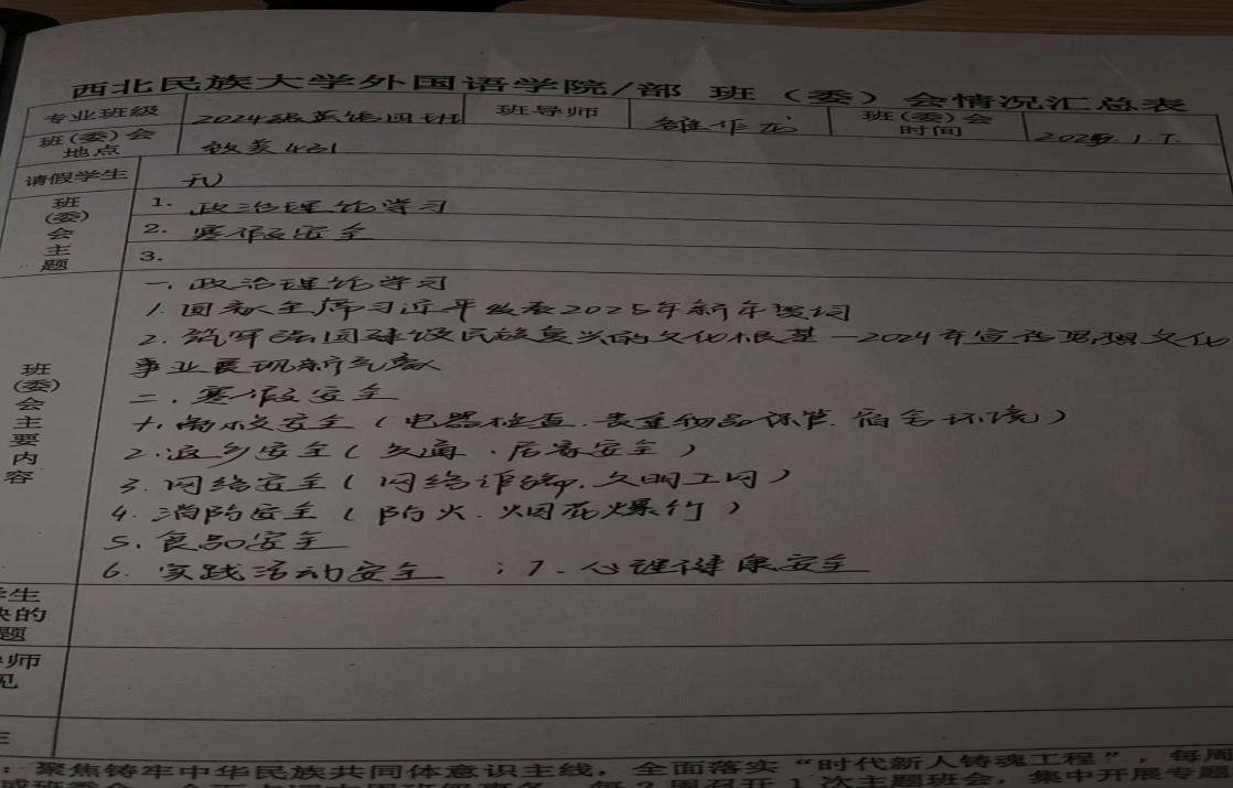 第二階段,班導師重點向學生強調了離校安全、返鄉及居家安全、網絡安全、消防安全等。希望大學生們在放松身心的同時,注意安全問題,提高自我保護意識,度過一個愉快、安全、健康的寒假。