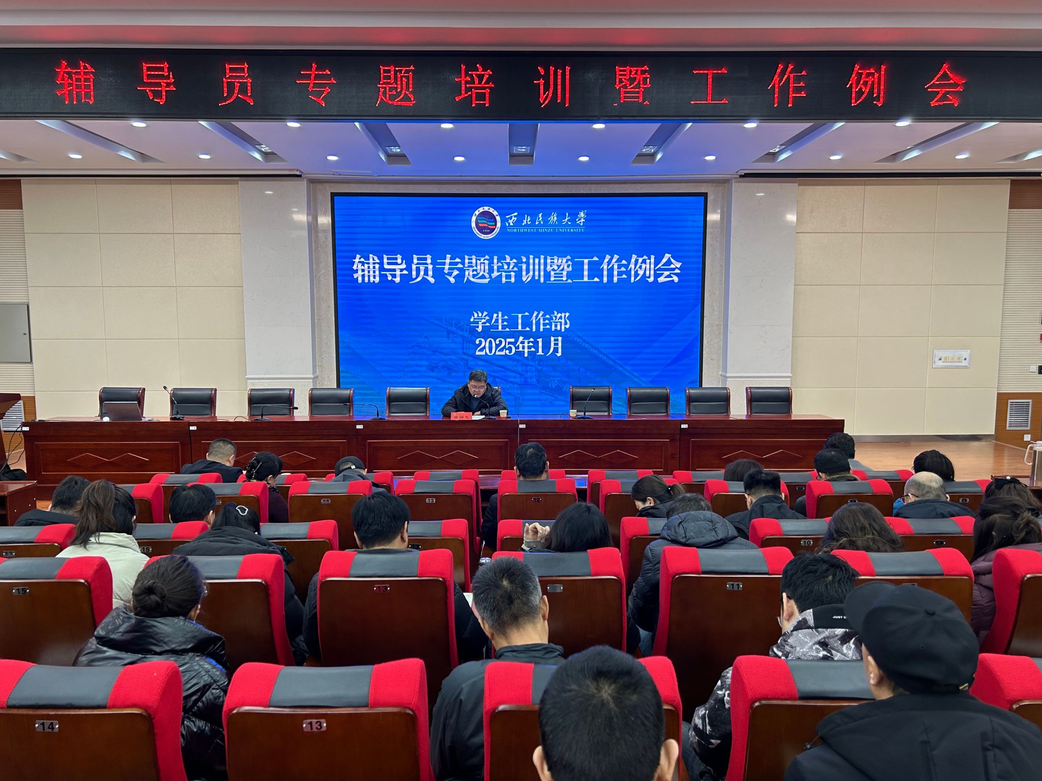 培训结束后,全体辅导员召开了本学期最后一次工作例会。会议对近期的工作进行了总结,传达贯彻落实国家民委关于寒假前后相关工作要求通知和学校第四次学生工作例会精神,进一步统一思想、凝聚共识,持续加强学生工作队伍建设,安排部署近期学生工作,确保寒假前后学生工作平稳有序,以优异成绩向学校第七次党代会献礼。会议由学生工作部部长刘曜主持。