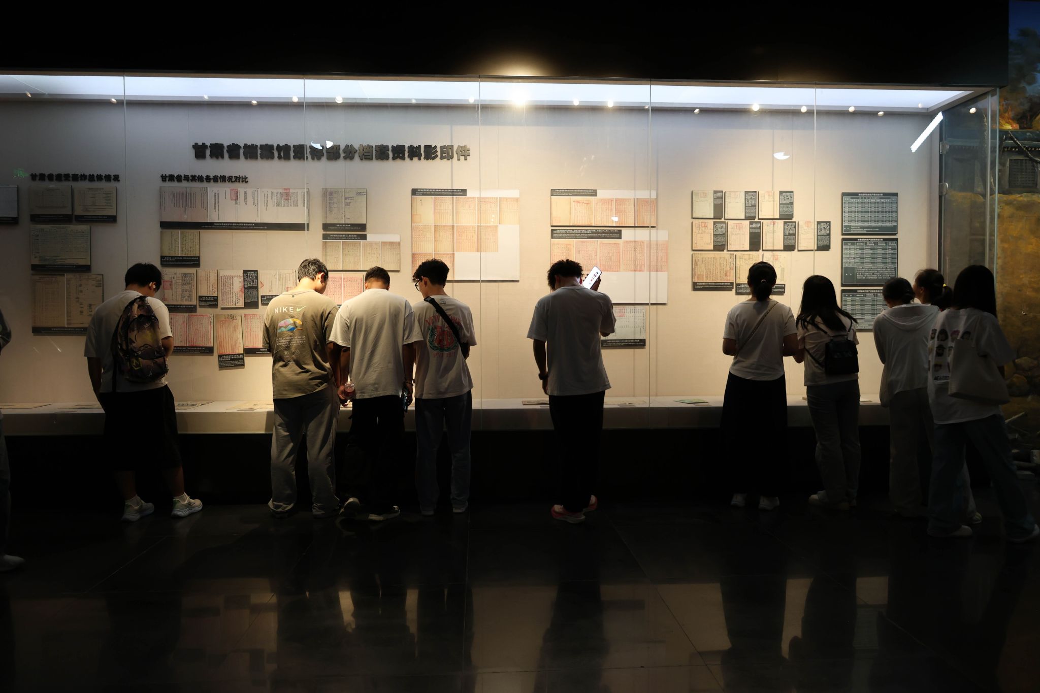 随后,师生们来到兰州市博物馆参观“甘肃抗日战争革命文献展”。展馆内丰富的抗战文献、实物资料和详实的历史记录,全面展现了甘肃人民在抗日战争中的伟大贡献和牺牲精神。同学们认真聆听讲解,仔细观看展品,不时驻足交流讨论,被革命先辈的爱国精神和奋斗精神深深感动。