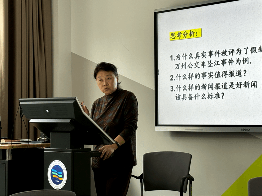 楊志平教授緊扣“新聞作品分析”這一核心主題,以2018年重慶萬州公交車墜江事件這一案例為切入點,深入闡釋了新聞寫作的基本方法,包括用事實說話、生動還原現場、恰當運用直接引語以及合理使用背景材料等,同時著重強調了事實在前、報道在后的新聞原則。通過鮮活的案例分析與通俗易懂的講解,同學們對新聞的本質、價值以及社會責任有了更為深刻的認知。