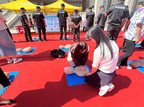 培訓分為急救知識理論授課、操作演示及參訓人員分組演練三部分。首先由甘肅省緊急醫療救援中心院前急救部部長郭學慧副主任醫師進行理論授課,郭主任從氣道異物梗阻現場急救、急性心肌梗死現場急救、腦卒中現場急救、關節扭傷現場急救、急性中毒現場急救、燒燙傷現場急救、電擊傷現場急救、狗咬傷現場急救、溺水現場急救等常見意外傷害現場急救知識及技能進行了詳細的講解。理論培訓結束后,全體人員在圖書館前廣場,由甘肅省緊急醫療救援中心和學校醫院的醫護人員將參訓人員分為三組,進行應急救護技能實操培訓,包括心肺復蘇術(CPR)、腹部沖擊術、止血包扎術、AED(自動體外除顫儀)的作用及使用方法等。