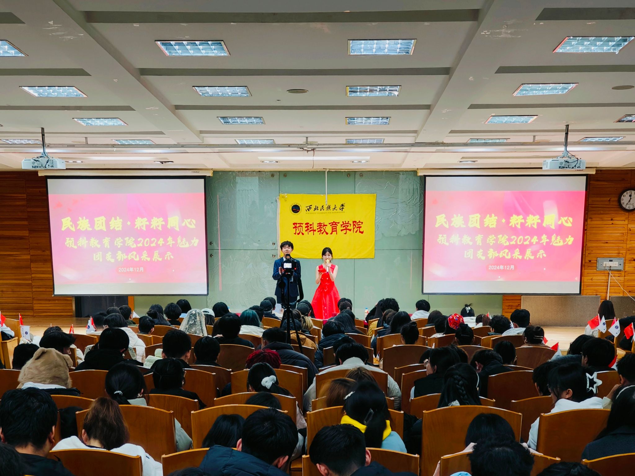 在璀璨的燈光下,各團(tuán)支部輪流上臺,以豐富多彩的表演形式展現(xiàn)他們的才華與魅力。從深情朗誦到動感舞蹈,從激昂合唱到創(chuàng)意小品,每一個節(jié)目都凝聚著同學(xué)們的心血與智慧,彰顯著民族團(tuán)結(jié)與青春活力的主題。現(xiàn)場觀眾被深深吸引,掌聲與歡呼聲此起彼伏,將冬日的寒冷完全驅(qū)散。