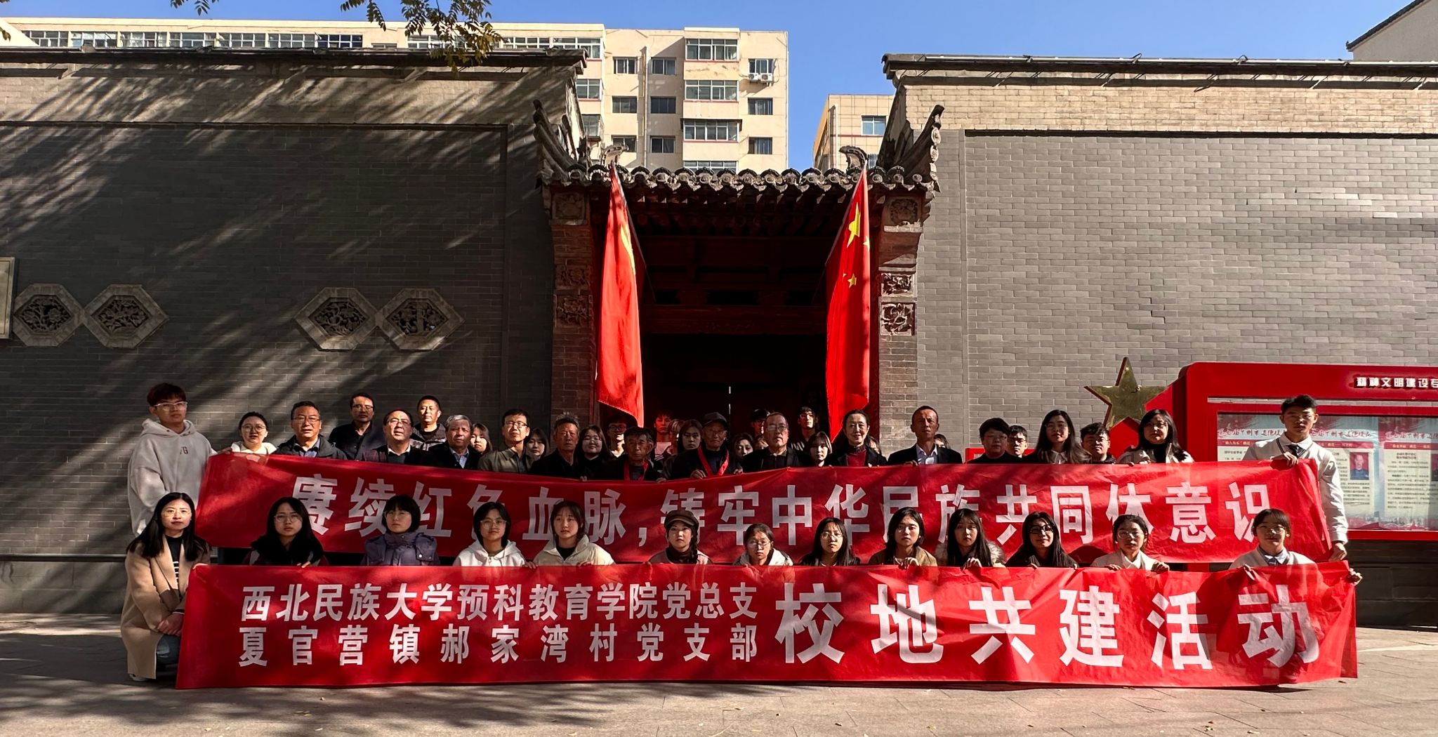 2023年 11月7日,預科教育學院黨總支組織開展鑄牢中華民族共同體意識系列活動之——“賡續紅色血脈,鑄牢中華民族共同體意識”參觀八路軍駐蘭辦事處紀念館,開展愛國主義教育活動,學院部分領導、校地共建單位夏官營鎮郝家灣村黨支部10位老黨員、學院團委負責人、輔導員、班主任、學生代表共計70余人參加了此次活動。