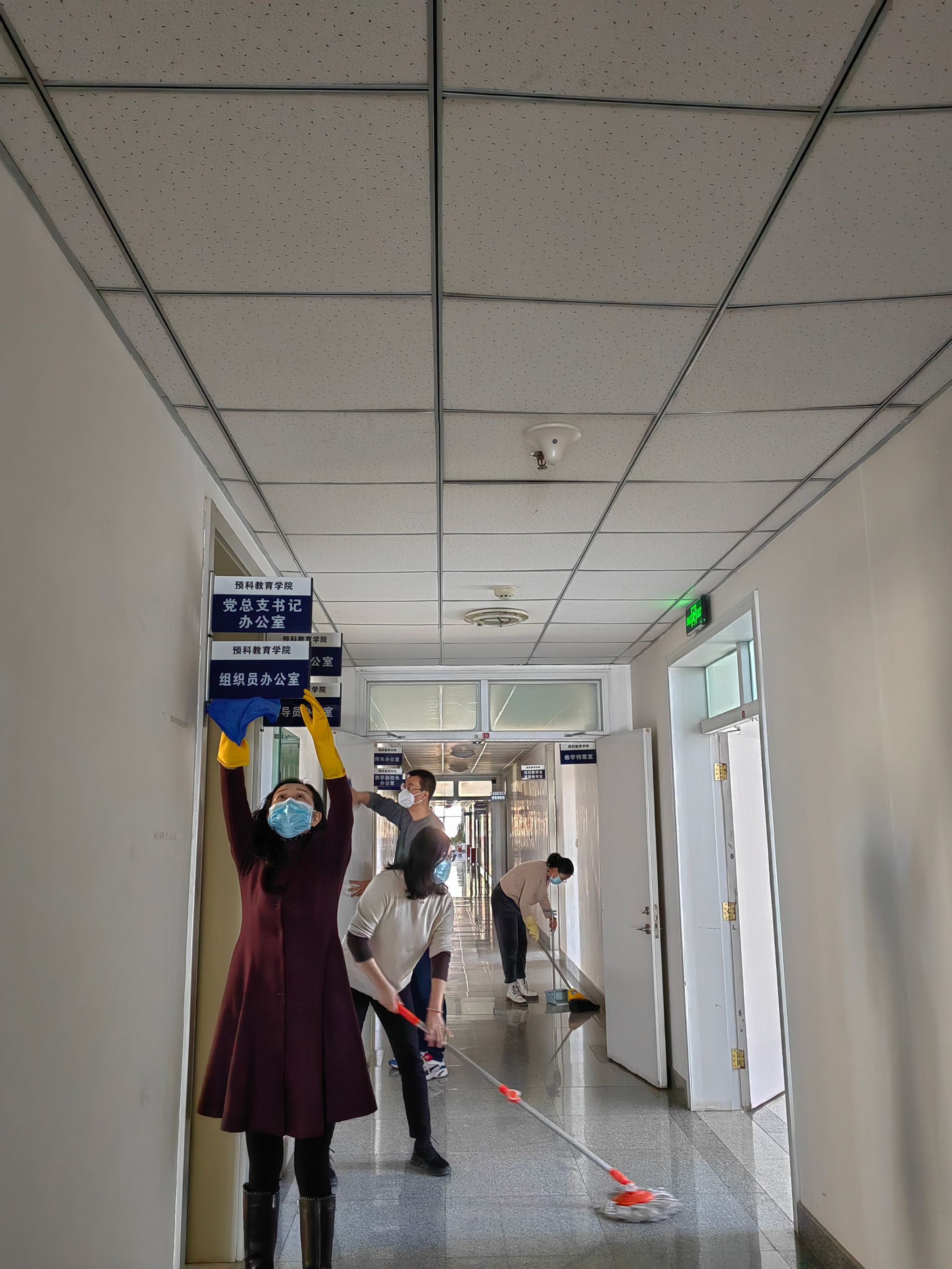 33日,學院組織教職工打掃辦公樓宇衛生。