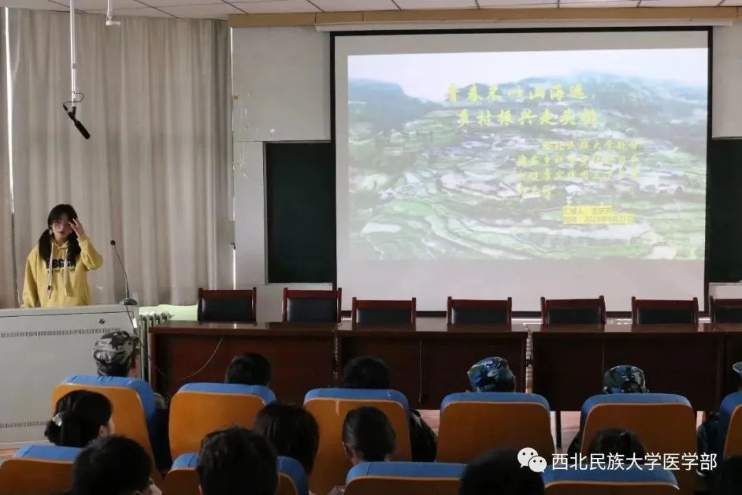 與此同時,醫學部關愛老年人身心健康愛心服務實踐團、“三高”防治科普實踐團、愛心義診實踐團等醫療服務實踐團的代表們,分別講述了他們在甘肅省臨夏市、東鄉縣、積石山縣,甘肅臨潭,河南欒川,四川南充等地耐心為當地群眾免費量血壓、測血糖,進行身體檢查志愿服務實踐活動。