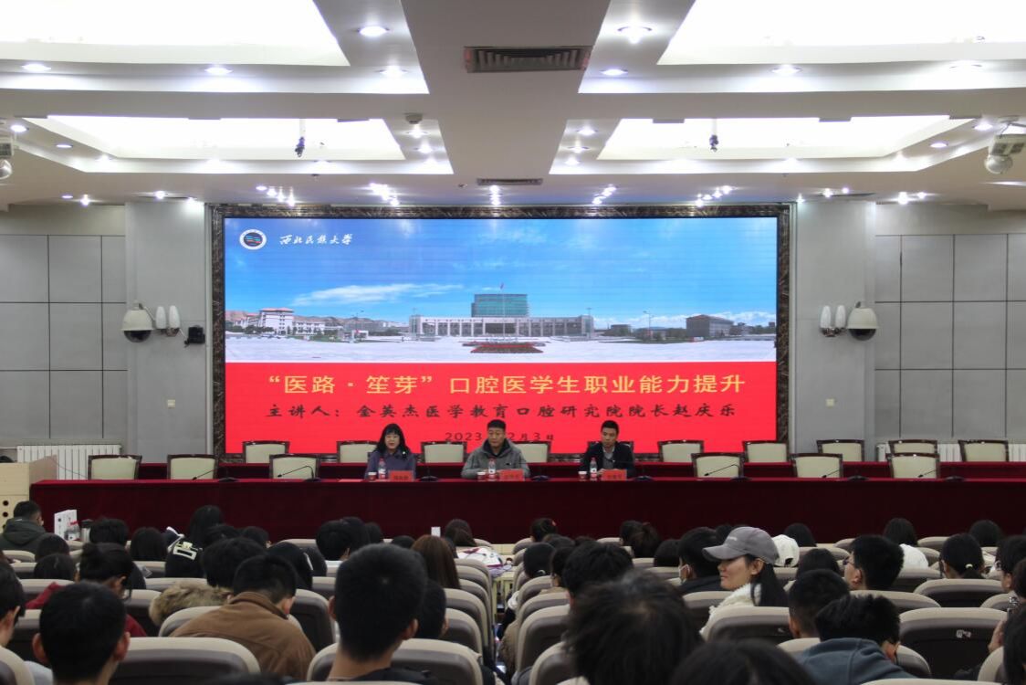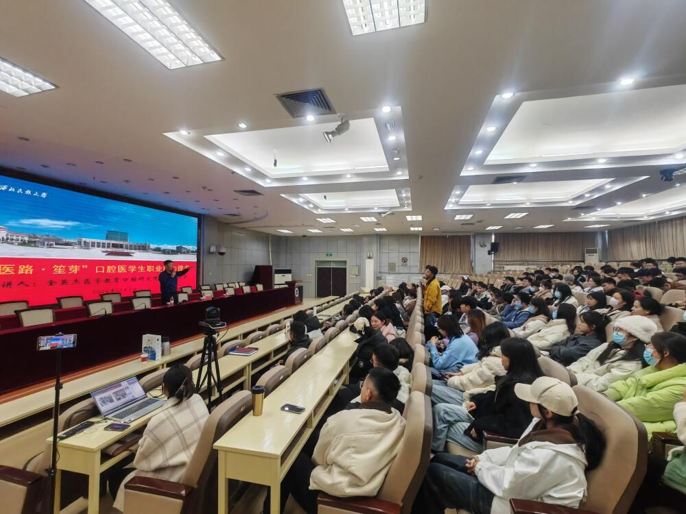 為幫助口腔專業學生規劃未來發展方向,拓寬職業發展眼界與思路,了解成為一名合格口腔醫生的發展途徑,做好學生職業生涯規劃指導,明晰執業醫師備考路徑,12月3日,醫學部在文津樓學術報告廳舉辦了“醫路?笙芽——口腔醫學生執業能力提升”專題講座,特邀金英杰醫學教育口腔醫學研究院院長趙慶樂主講。講座由醫學部副主任、口腔醫學院副院長周海靜教授主持,口腔醫學專業全體在校生參加講座。