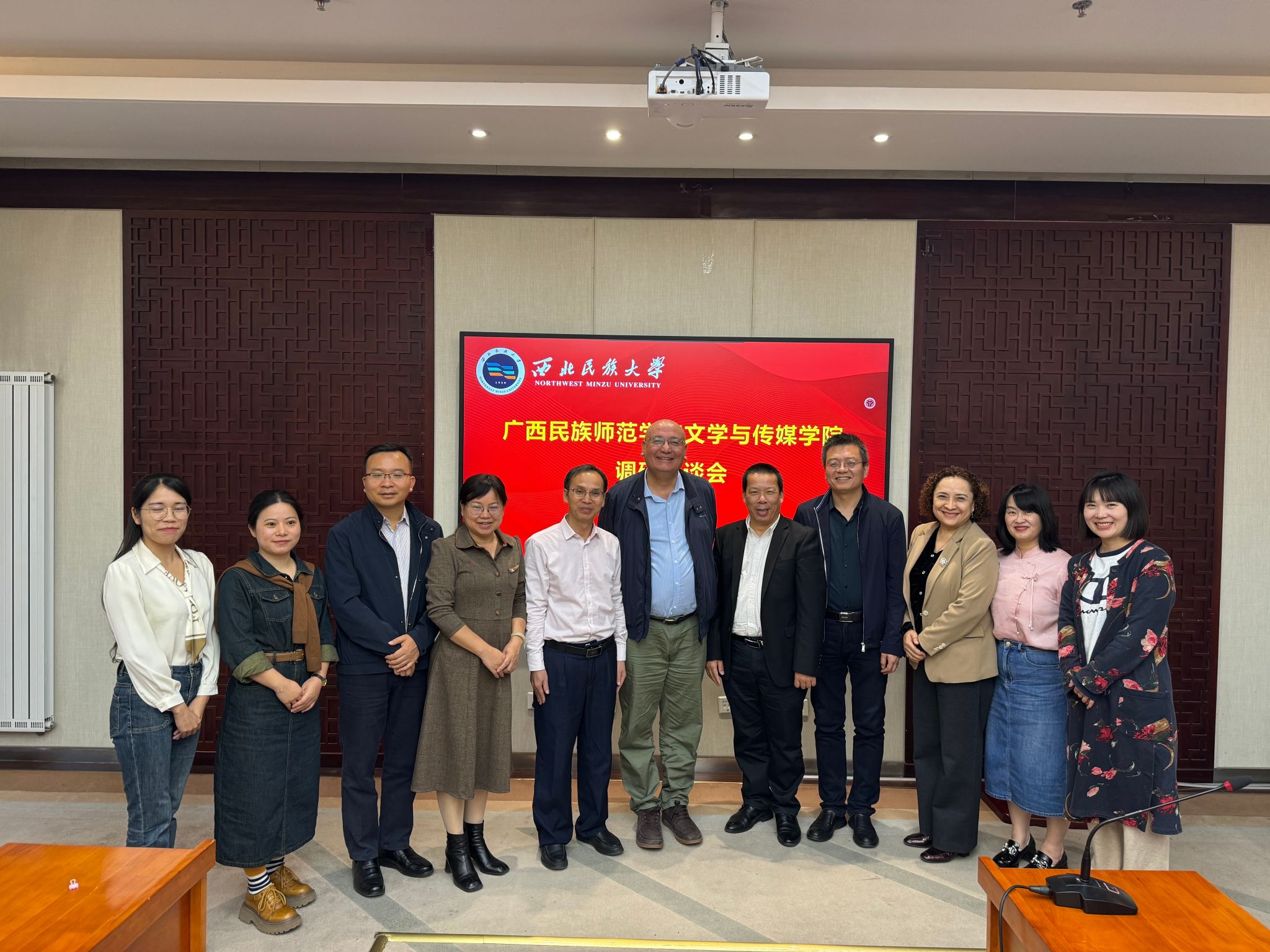 會后,廣西民族師范學院文學與傳媒學院一行參觀“三大史詩”研究展示館。通過此次調研,雙方院校增進了了解,相互學習了先進的辦學經驗,并表示在今后的辦學中將持續保持聯系,共同推進學部學院高質量發展。