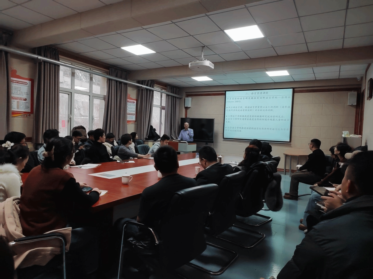 2024年12月8日下午,西北民族大學中國語言文學部主辦的以“語言資源調查研究方法”為主題的學術講座在本部文淵樓518舉行,此次講座由中國社會科學院大學教授、博士生導師黃成龍主講,中國語言文學學部、博士生導師多杰東智教授主持,共四十余名師生參加。