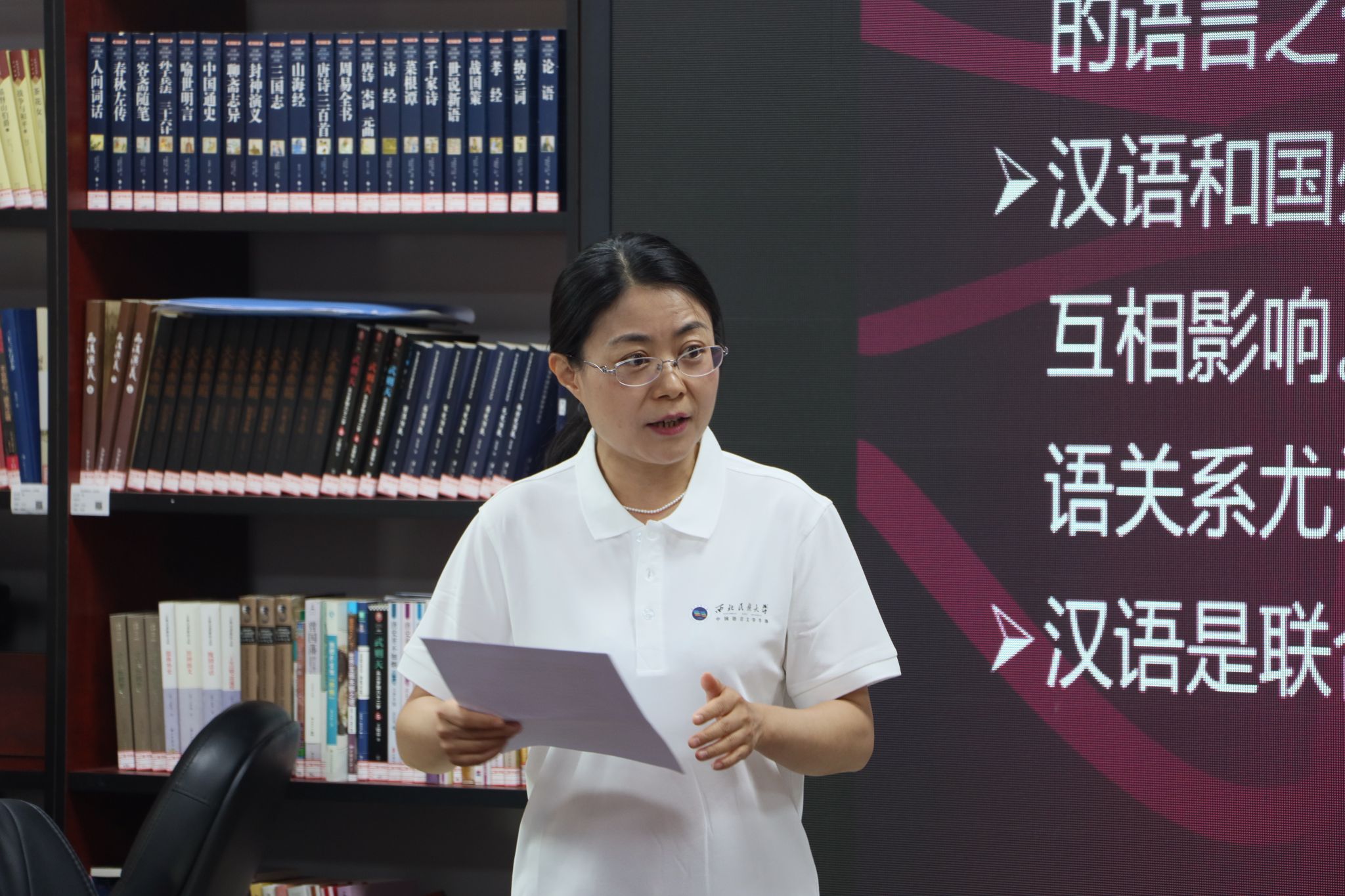在見證絲路“青海道”千年繁華、曾為多民族商旅往來咽喉的峨堡古城遺址,厚重的夯土城墻無聲訴說著交往交流交融的歷史。實(shí)踐團(tuán)在此深刻體會到:推廣普通話,正是為了讓這份跨越千年的交融更順暢,讓文化傳承更有力。在峨堡鎮(zhèn)政府,推普志愿服務(wù)團(tuán)指導(dǎo)教師、省級普通話水平測試員王婧為當(dāng)?shù)毓ぷ魅藛T進(jìn)行了細(xì)致的語言基礎(chǔ)強(qiáng)化訓(xùn)練,如方音辨證與吐字歸音等,呼吁大家樹立規(guī)范用語用字意識,提升語言能力和應(yīng)用水平,現(xiàn)場互動頻頻。活動還創(chuàng)新結(jié)合當(dāng)?shù)亟z路歷史特色,融入了高原常見疾病科普知識講解與八段錦健身功法教學(xué),在歡快的氣氛中以普通話為紐帶拉近了心與心的距離,通過創(chuàng)新實(shí)踐激活歷史基因,助力鄉(xiāng)村振興與文化傳播。