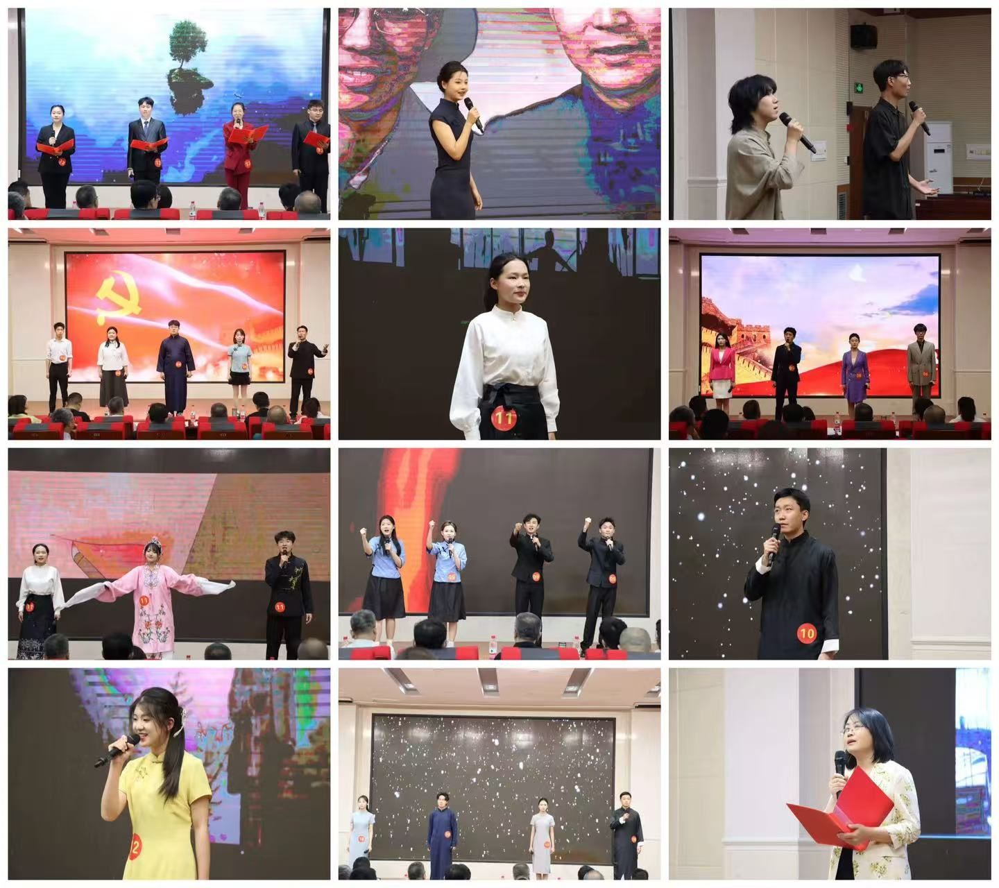 經初賽、復賽選拔,13組選手晉級決賽,角逐省級賽事資格。決賽現場,選手們精神飽滿,緊扣中華經典主題,演繹了涵蓋紅色經典作品、現代詩歌及社會主義文化等多元類型,以真摯情感和生動表達詮釋經典內涵,展現中華文化魅力。中國語言文學學部教師代表同臺獻誦,呈現師生共赴文化傳承之約的生動景象。