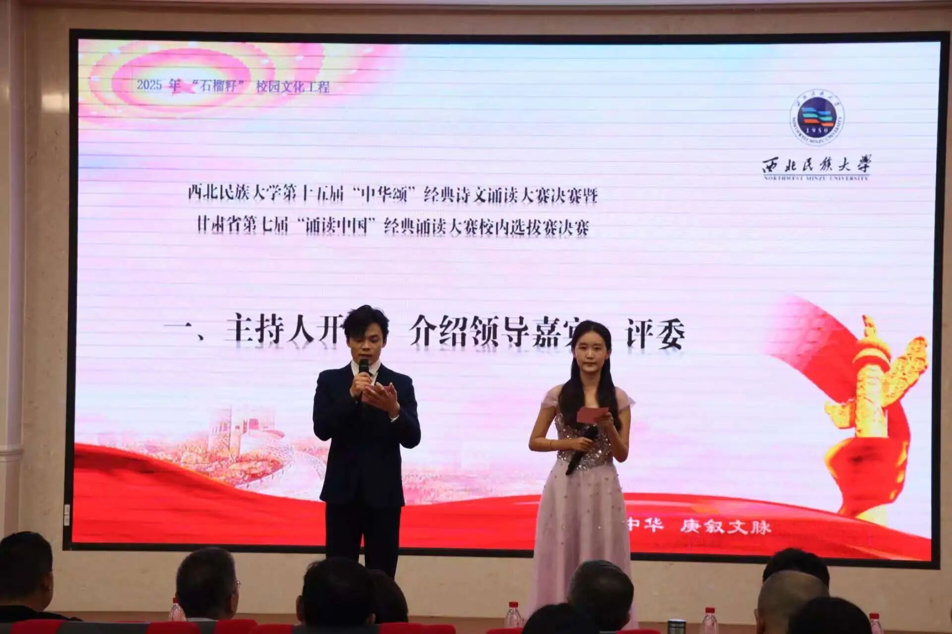 為深化“石榴籽”校園文化工程建設,推廣國家通用語言文字,弘揚中華優秀傳統文化,鑄牢中華民族共同體意識,6月3日,由校團委、教務處、中國語言文學學部主辦,國家語言文字推廣基地(西北民大)等承辦的第十五屆“中華頌”經典詩文誦讀大賽決賽暨甘肅省第七屆“誦讀中國”大賽校內選拔賽在榆中校區圓滿落幕。校黨委常委、副校長景兆璽出席活動并為獲獎選手頒獎,相關職能部門負責人、各學院(部)師生代表300余人到場觀賽。