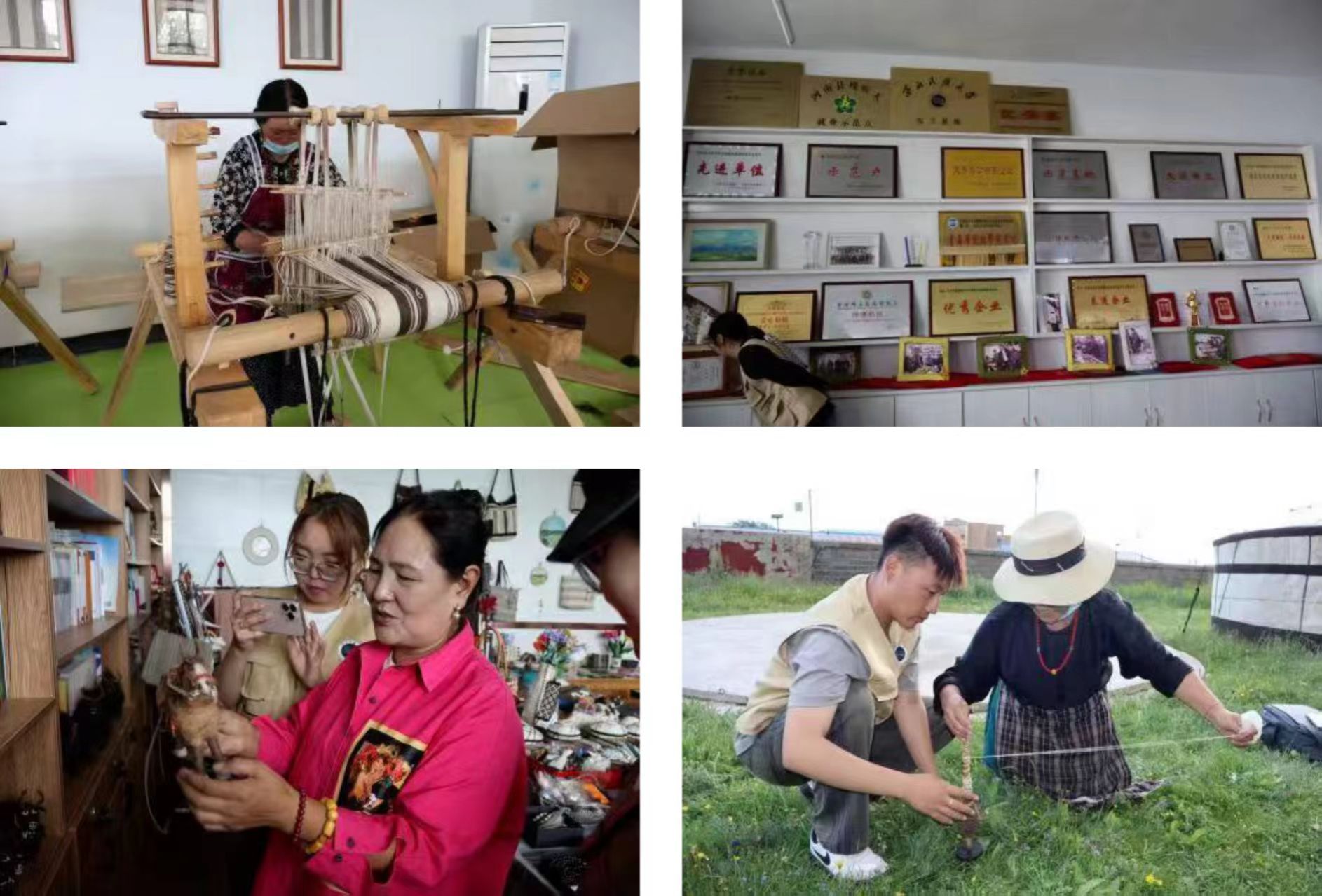 在河南縣“樂(lè)樂(lè)瑪”非遺傳習(xí)中心,傳承人才讓吉老師向?qū)嵺`團(tuán)展示了“蒙古搟氈+藏式堆繡”的獨(dú)特工藝。羊毛經(jīng)過(guò)72道工序化作氈包,再以五彩絲線堆繡出雪山牦牛的圖案,每一針每一線都凝聚著蒙藏文化的交融。中心通過(guò)電商平臺(tái)將手工藝品銷(xiāo)往全國(guó),帶動(dòng)牧區(qū)婦女就業(yè)增收。成員們還親手體驗(yàn)了制作過(guò)程,感受傳統(tǒng)工藝的匠心與創(chuàng)新。