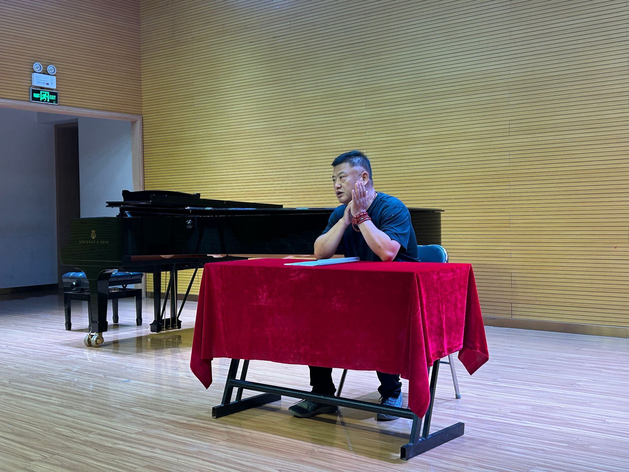 圖為扎西朋達(dá)老師進(jìn)行歌曲《滿江紅》的演唱及藝術(shù)處理課程授課
