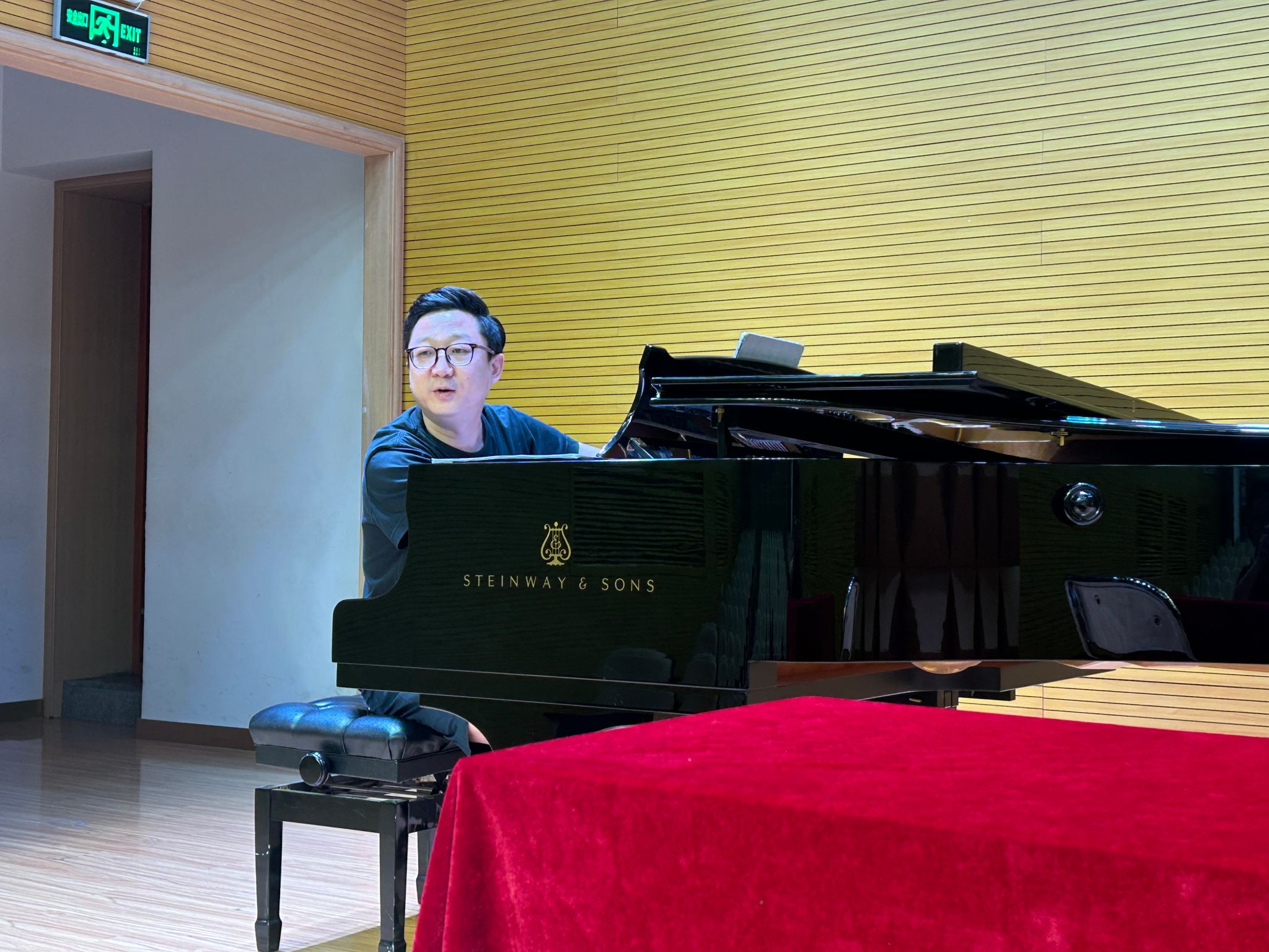圖為朱子健老師講授因材施教——聲樂(lè)理論與實(shí)踐相結(jié)合,多方面引導(dǎo)式教學(xué)
